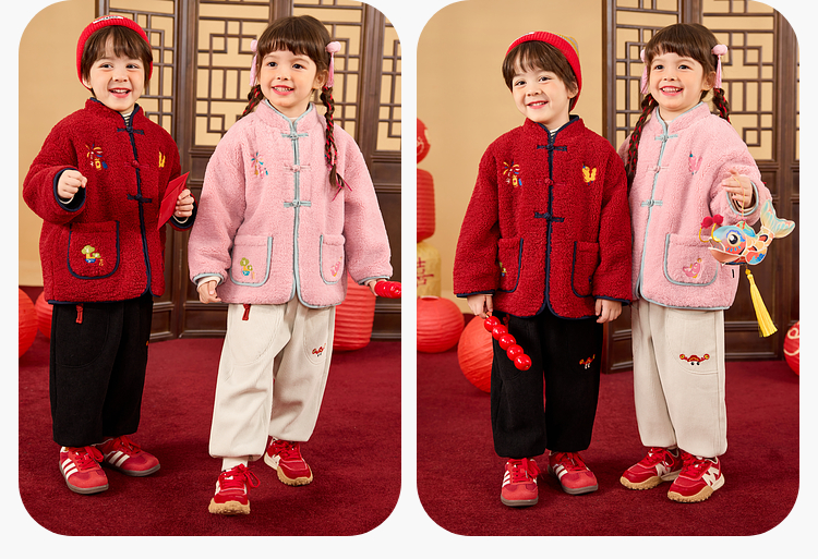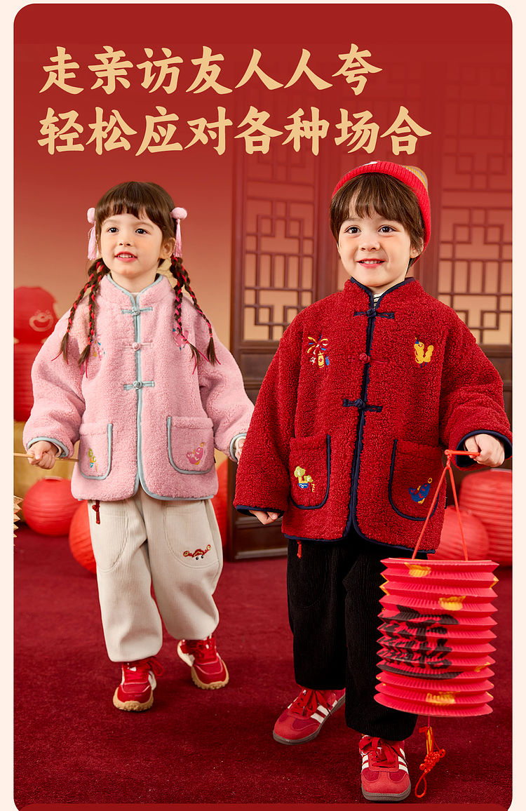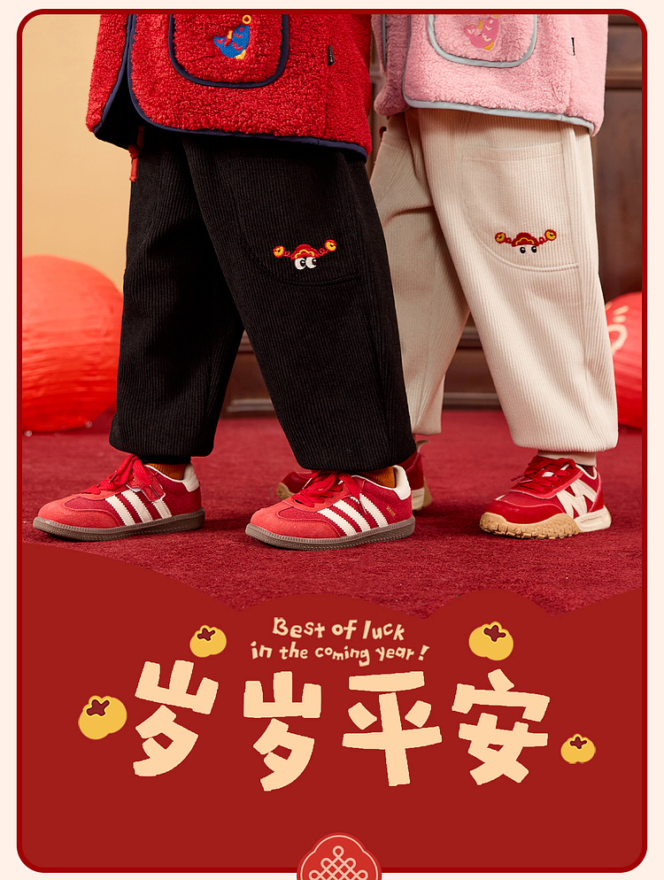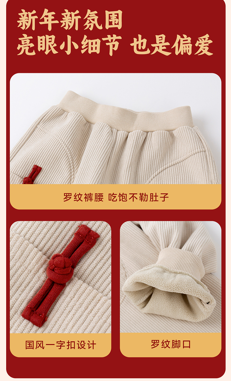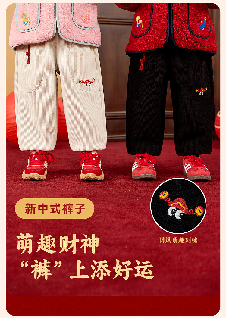 嘟嘟家童装儿童加绒裤子冬季加厚男童新年长裤女童休闲裤拜年服潮