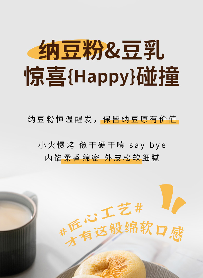 主打就是松软,纳豆粉和豆乳的精喜碰撞,奶香浓郁,柔软湿润不干噎