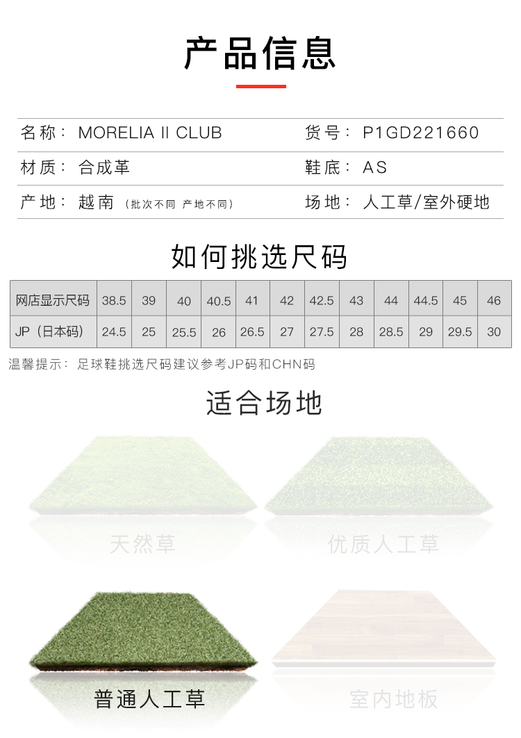 Mizuno/美津浓 MORELIA II CLUB AS (Short Tongue/MS-044) 男子足球鞋P1GD221660