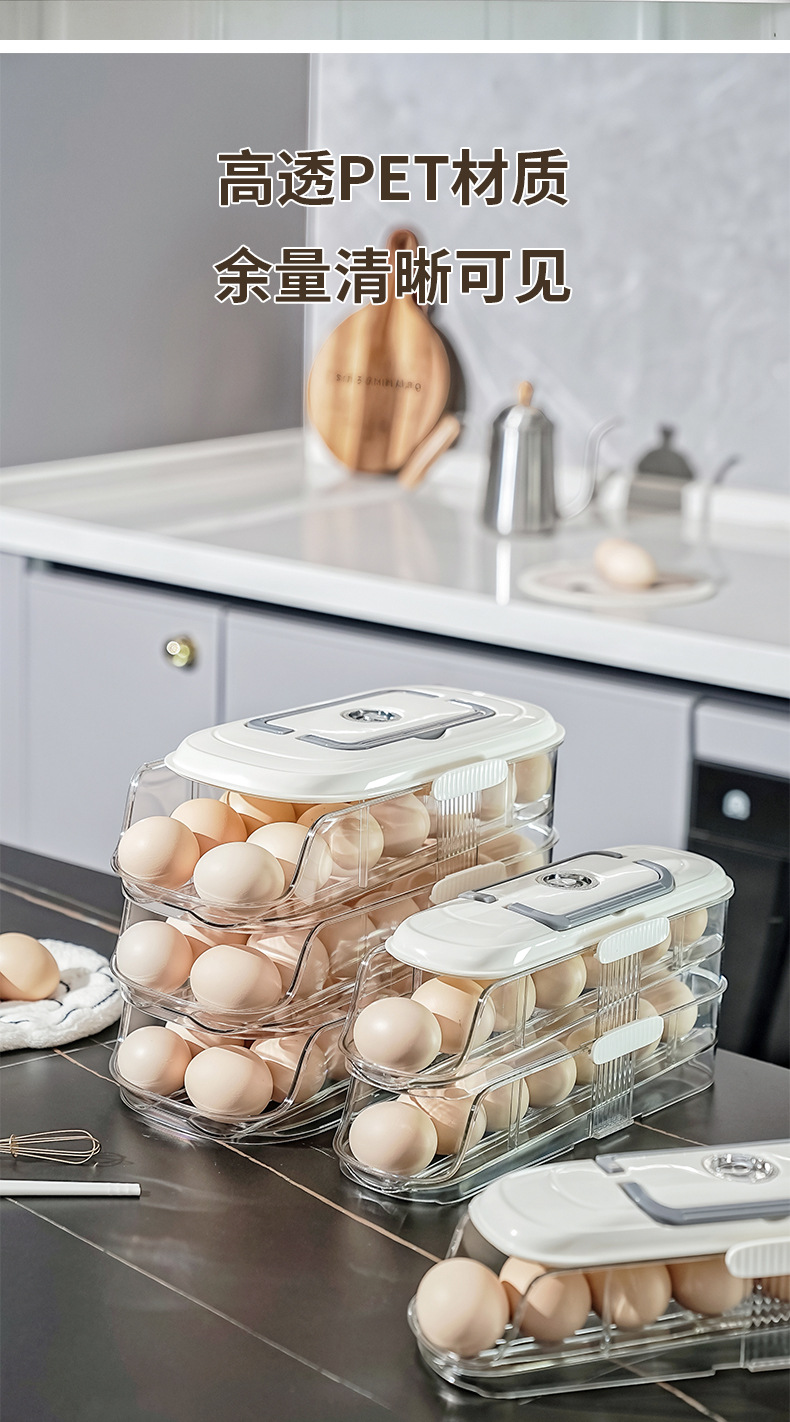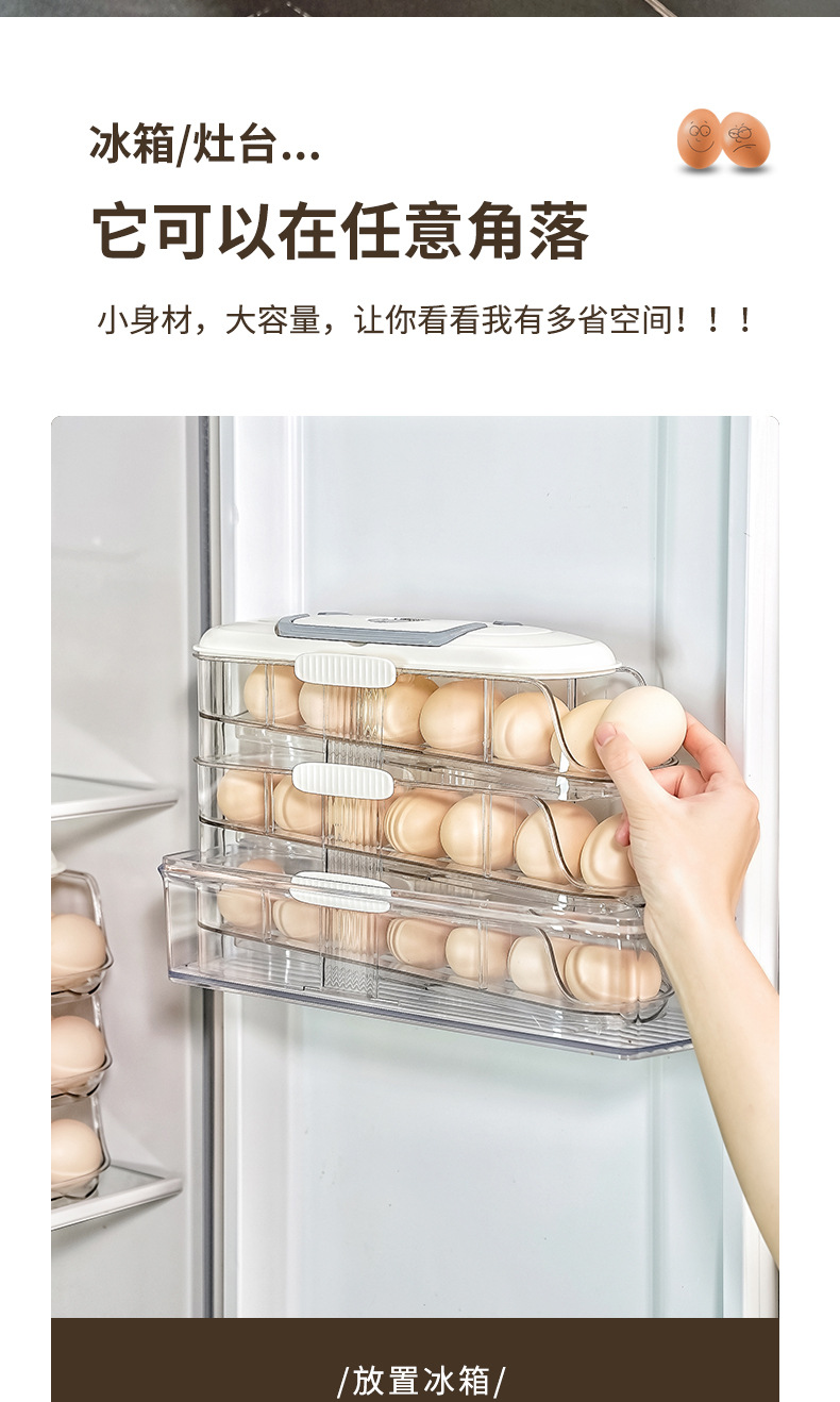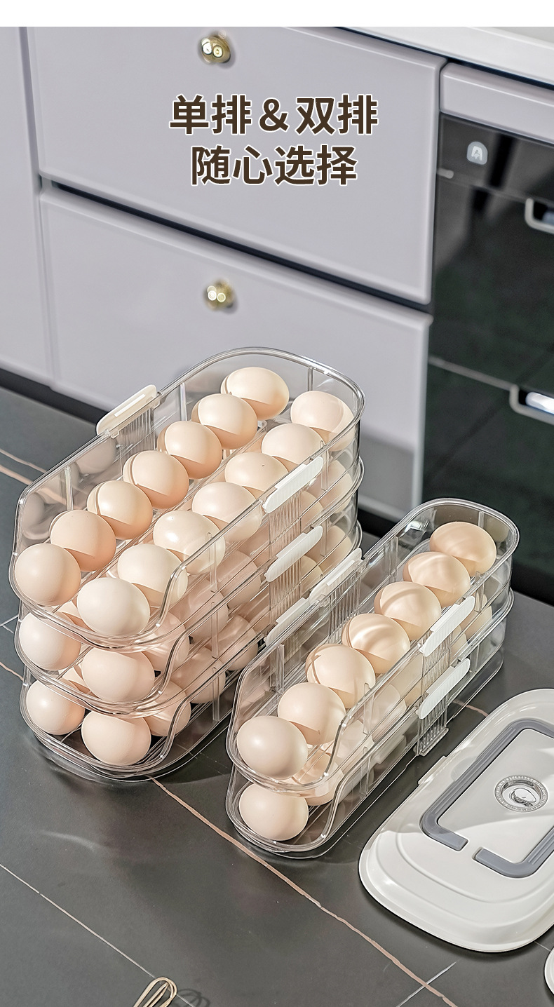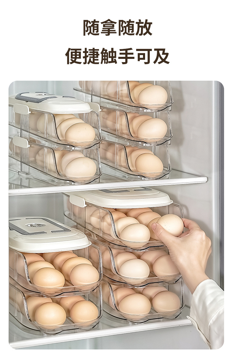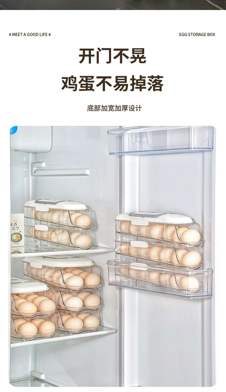 【轻松收纳!大容量】家用鸡蛋盒滑梯式滚蛋器抽屉式鸡蛋架冰箱侧门储物盒子鸡蛋收纳盒。xa