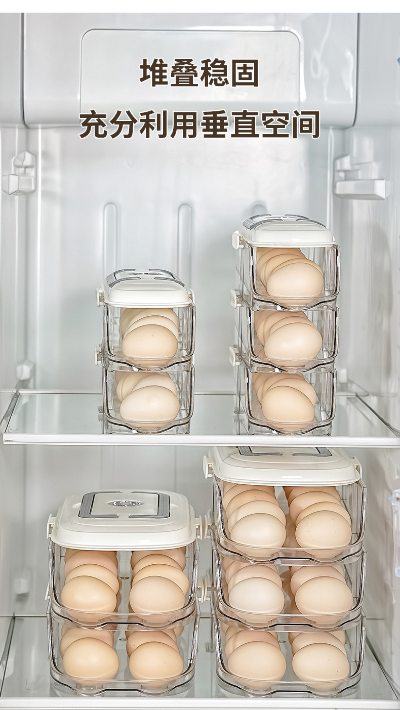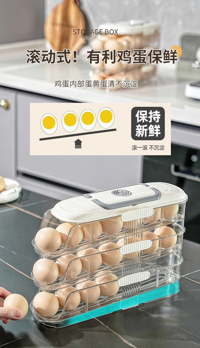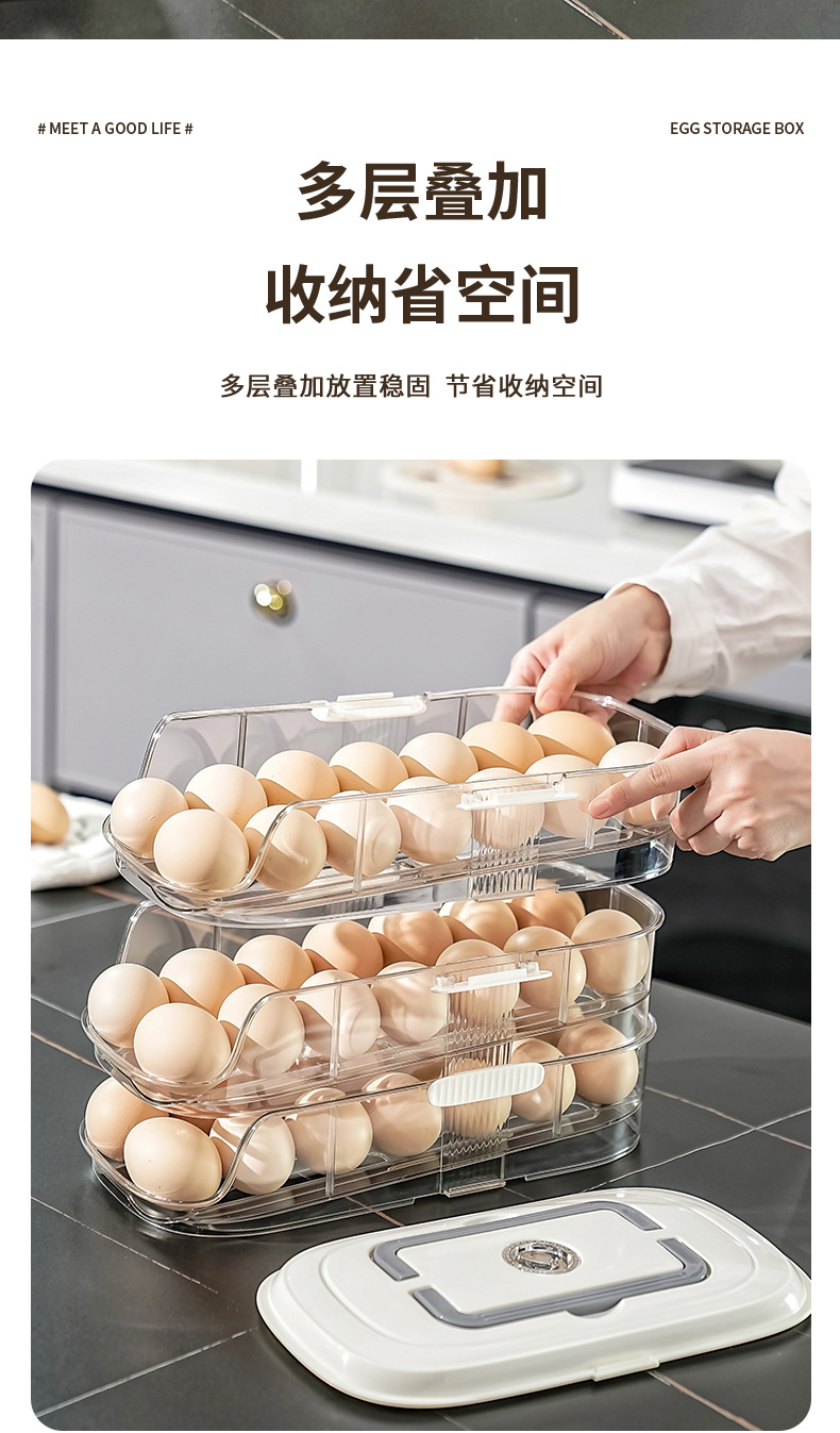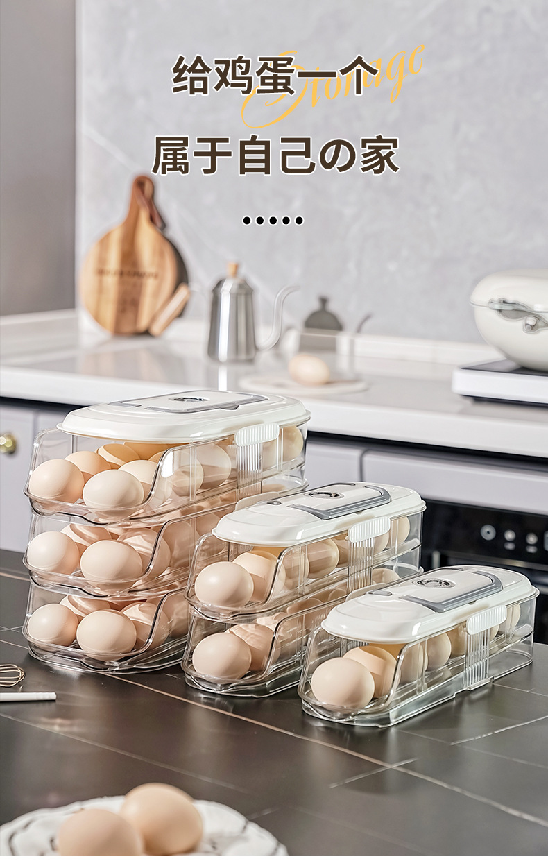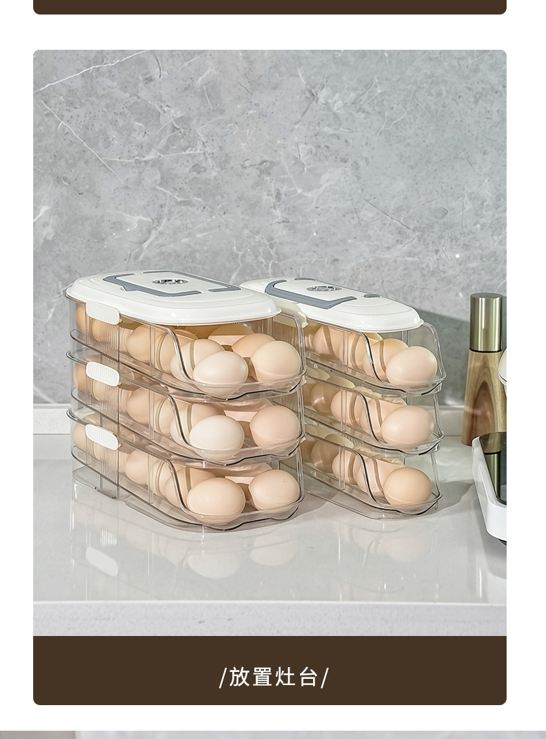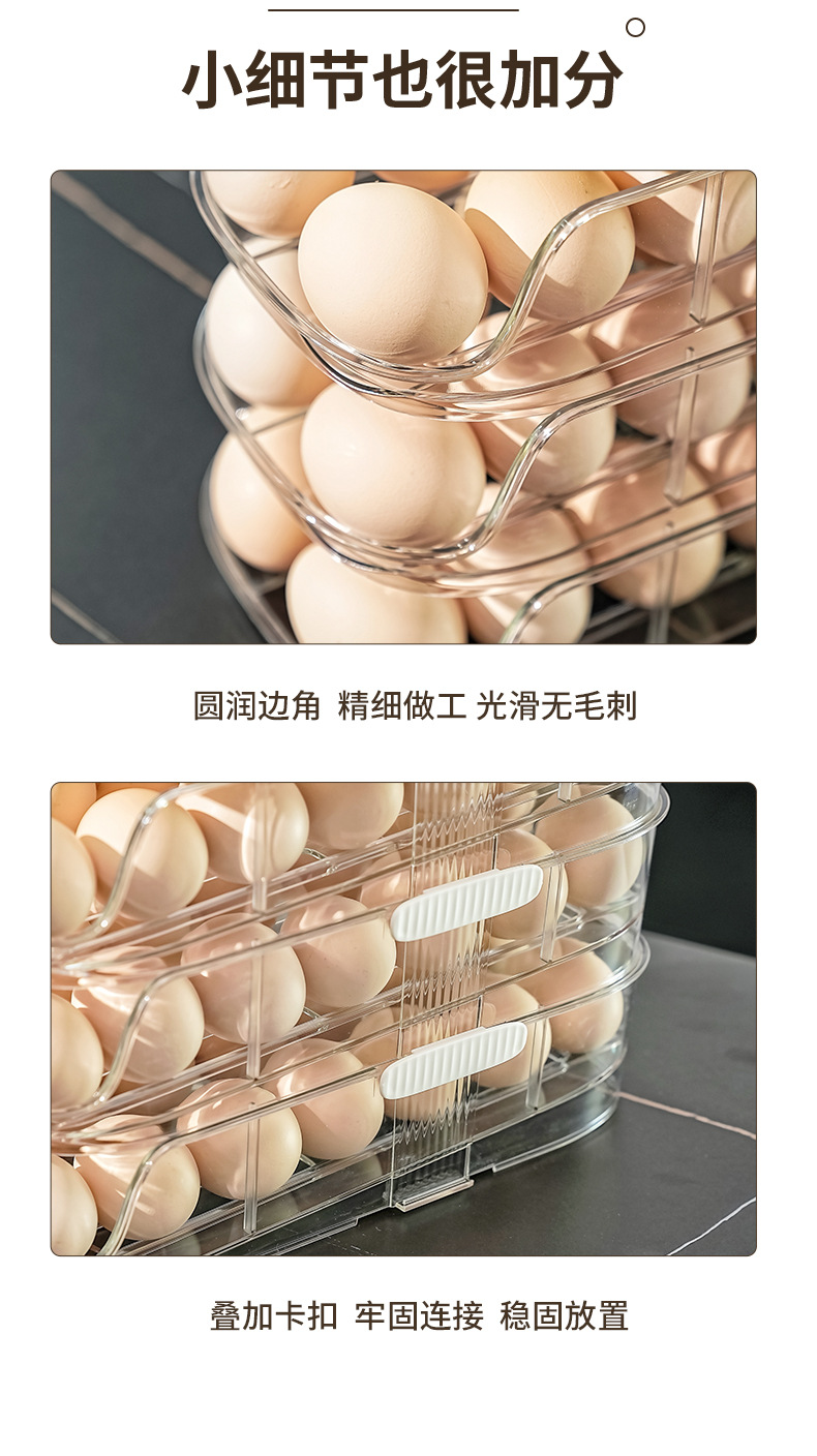 【轻松收纳!大容量】家用鸡蛋盒滑梯式滚蛋器抽屉式鸡蛋架冰箱侧门储物盒子鸡蛋收纳盒。xa