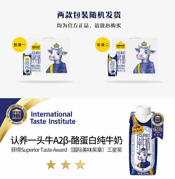 认养一头牛A2β-酪蛋白高端纯牛奶250ml * 10盒*2提