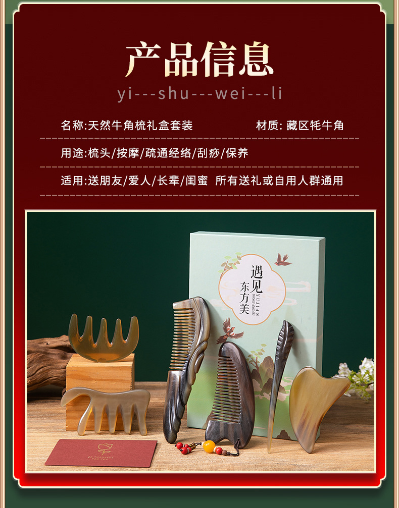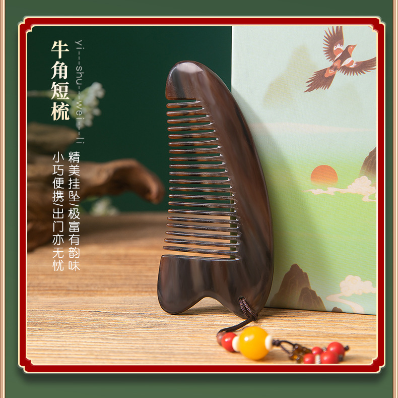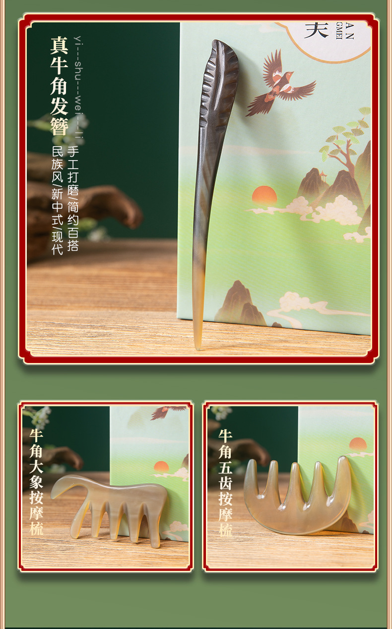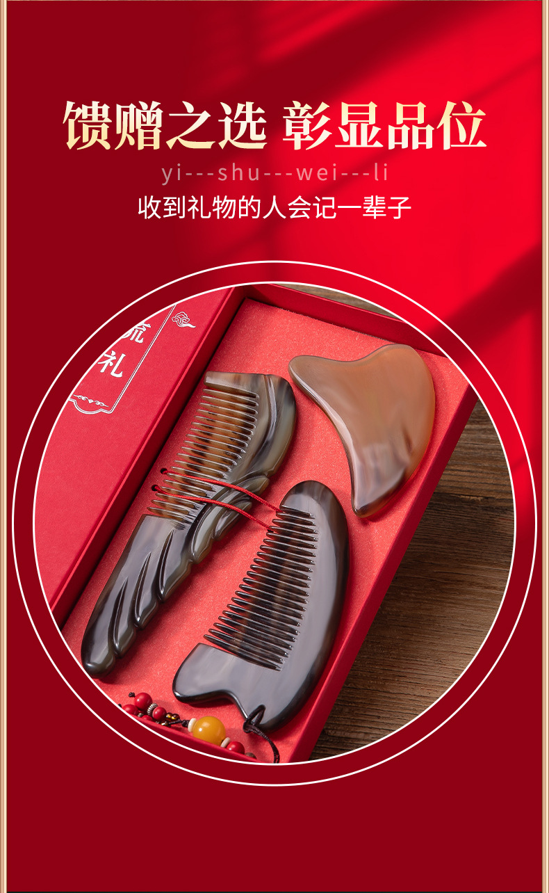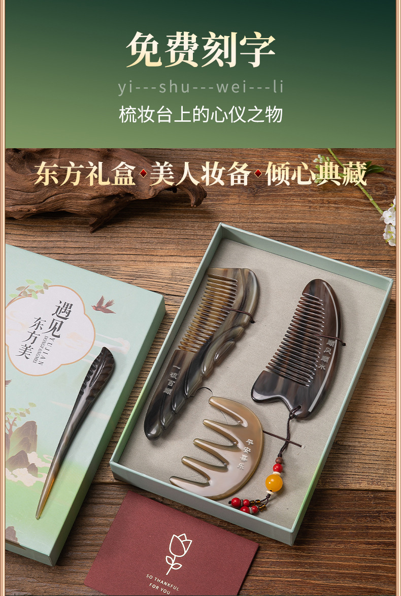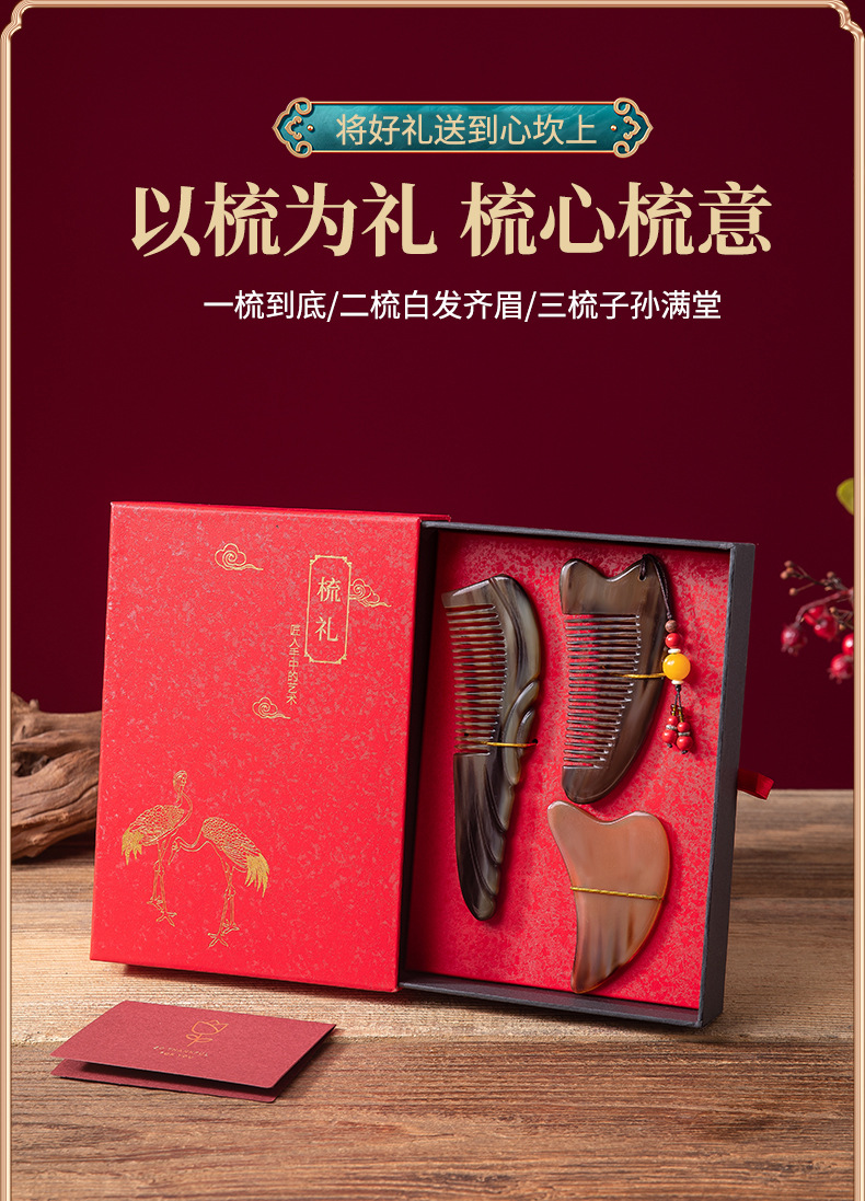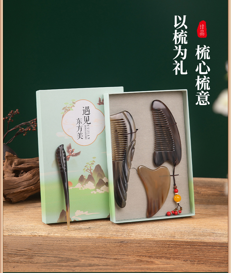 七夕好礼【赠送穴位图!天然牛角梳礼盒套装】生日礼物女送女朋友天然牛角梳实用经络按摩梳发簪新婚送老婆礼品。ra