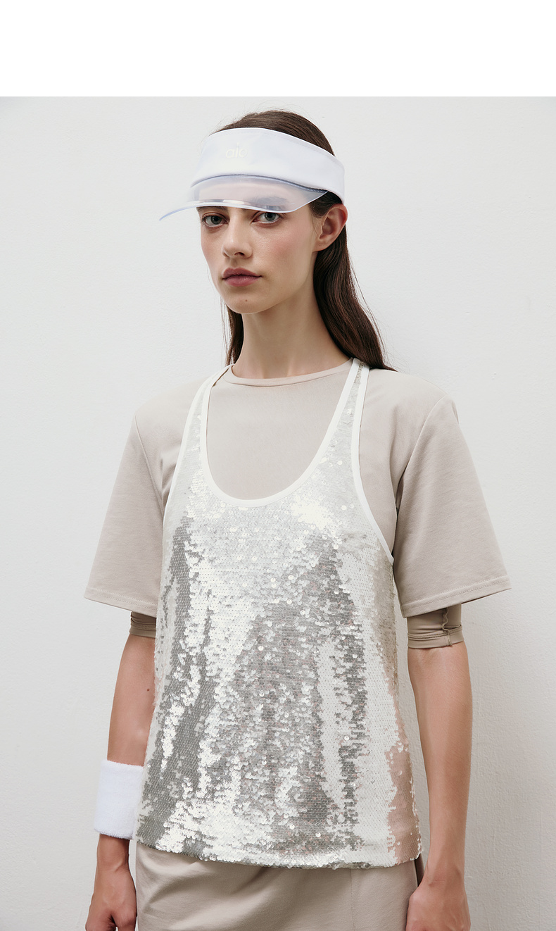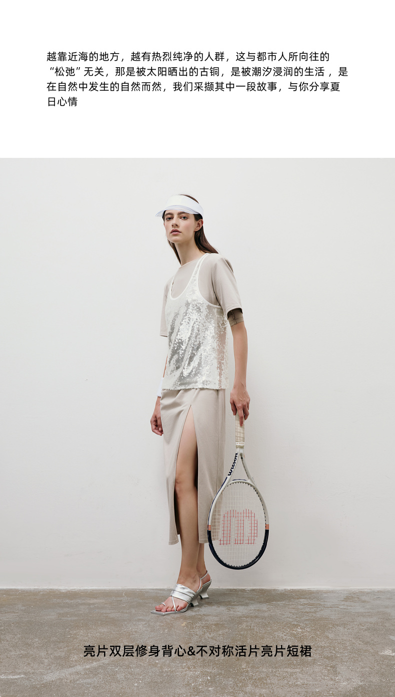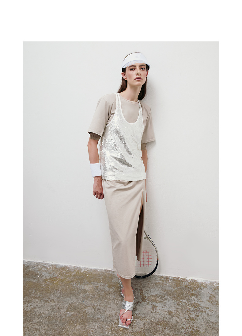 lost in echo2025夏季新款高级亮片双层修身显瘦背心半身裙套装