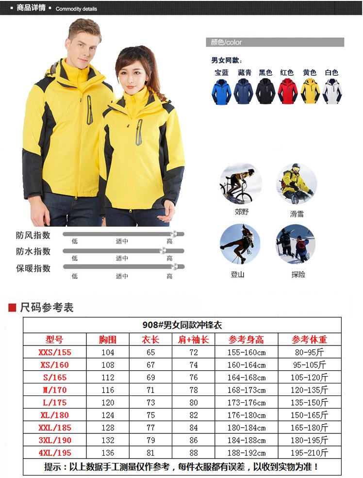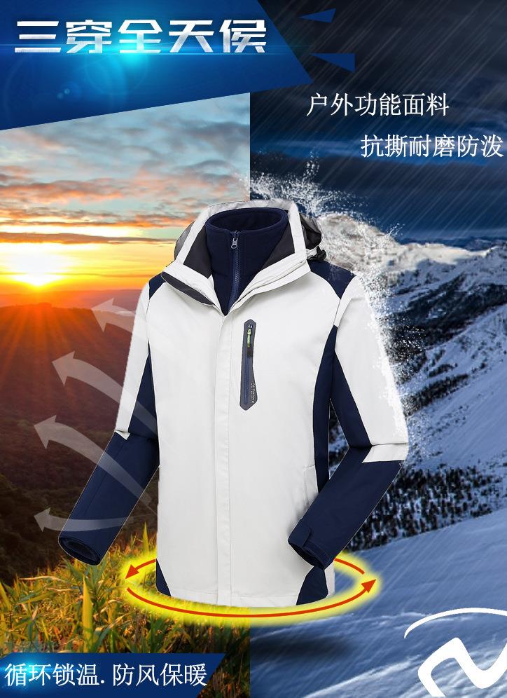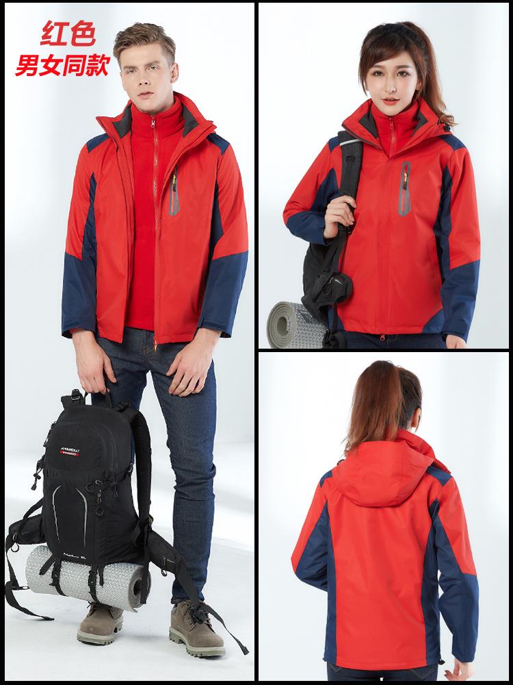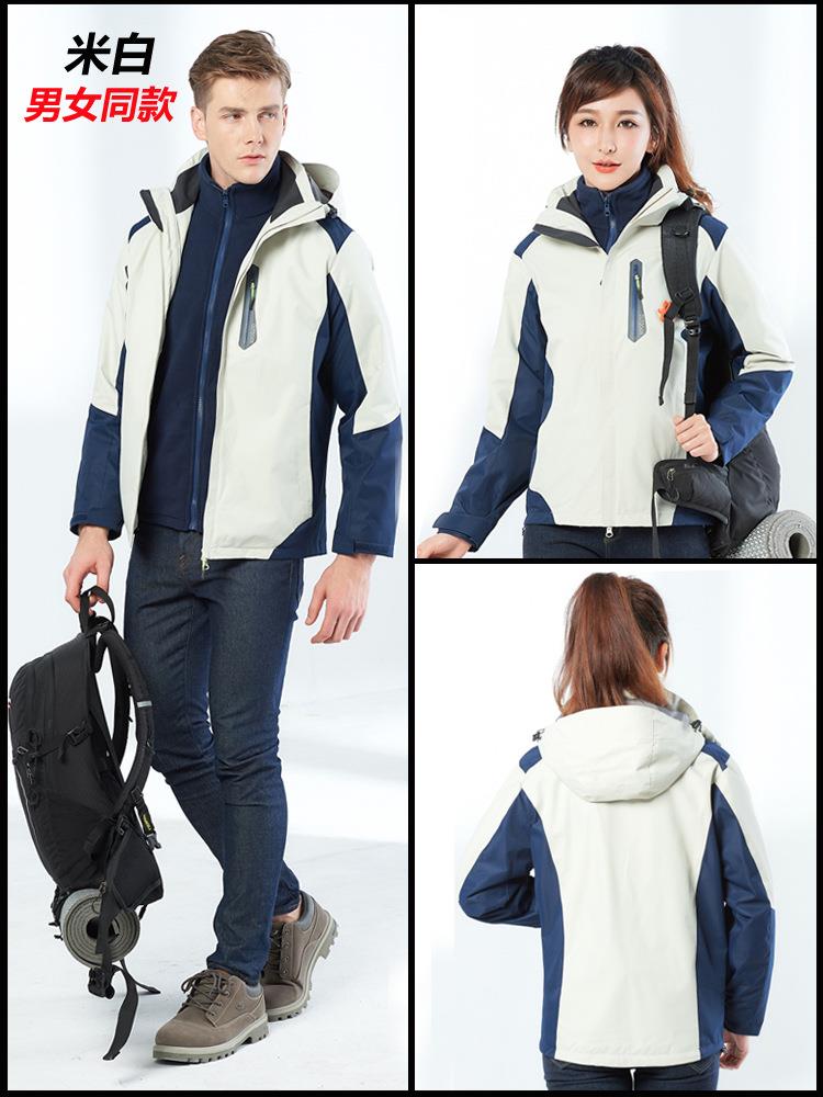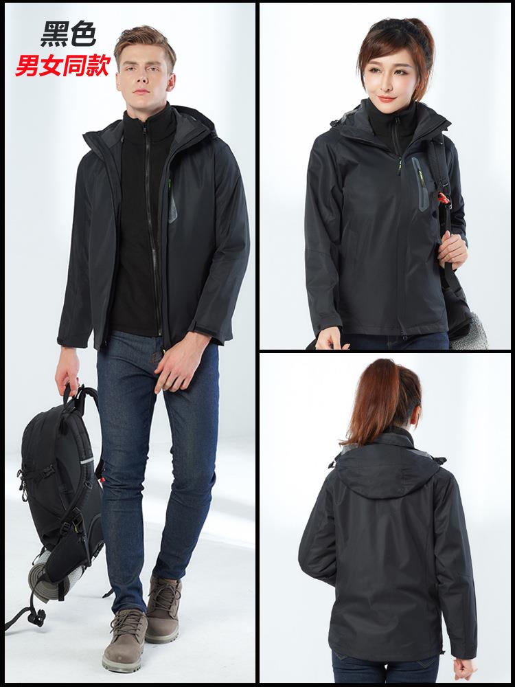 拓外新款户外冲锋衣男女士三合一两件套可拆卸防风防水滑雪登山服