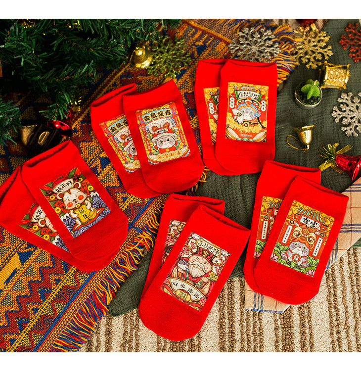 妙竹2020鼠年红袜子礼盒装本命年踩小人大红袜新年节庆中筒袜纯棉女袜 6双中筒袜礼盒装 5双短袜礼盒装