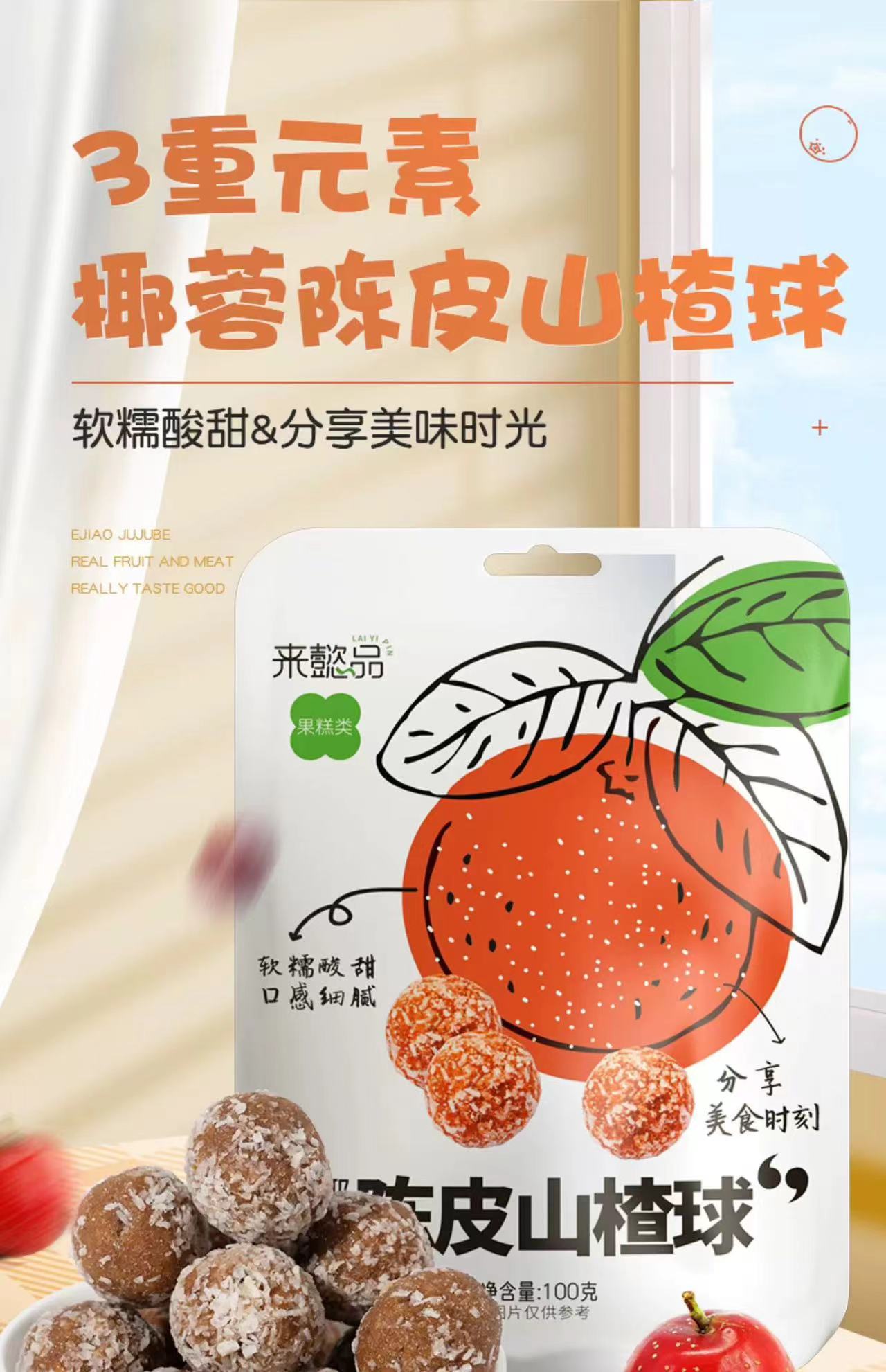椰蓉陈皮山楂球100克/袋,10袋;