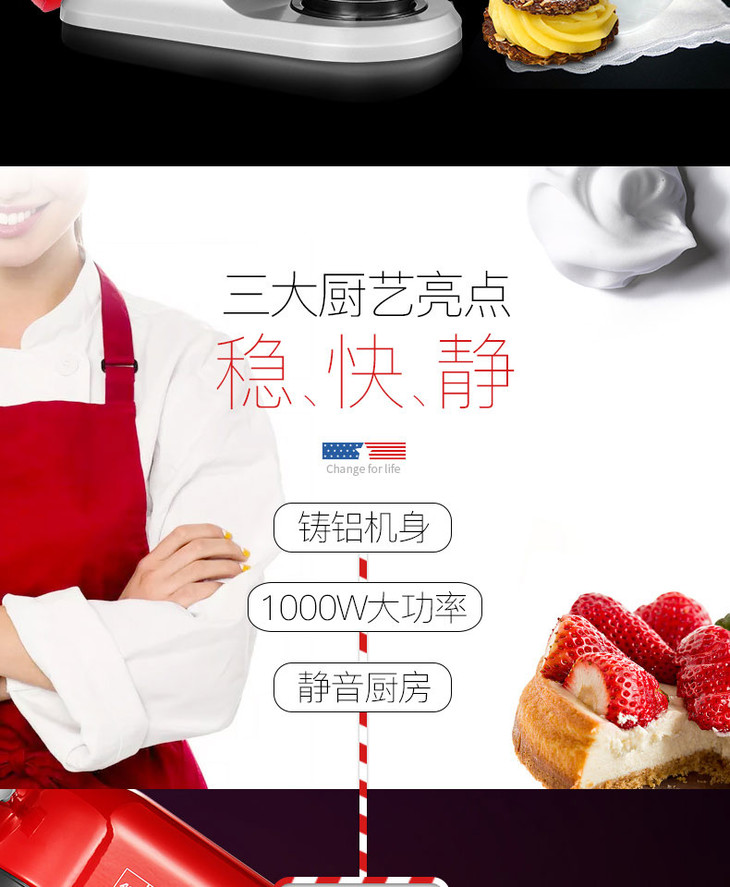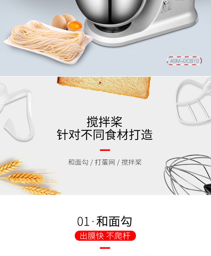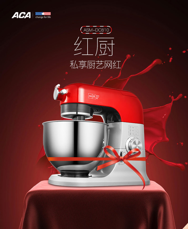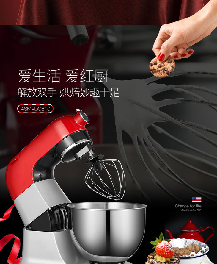北美电器(ACA)厨师机家用和面机揉面机打蛋器多功能搅拌机料理机打奶油机鲜奶机ASM-DC810