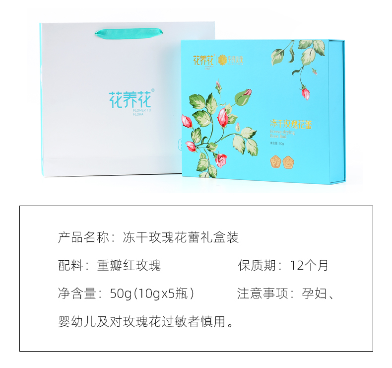花养花 冻干玫瑰鲜花茶礼盒36g(18g*2)