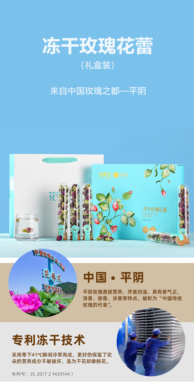 店铺产品主要包括冻干玫瑰花冠茶、低温烘干玫瑰花冠茶、玫瑰鲜花液、玫瑰花瓣、玫瑰纯露、玫瑰食品、玫瑰化妆品等。