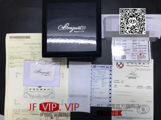 实收物品:1手表、2专柜系列原装盒、3说明书、4保修卡、5吊牌、6手提袋、7国家证书、8专柜机打小票、9银联pos机刷卡单、10表行发票、11验货码、12信封、13拆表工具