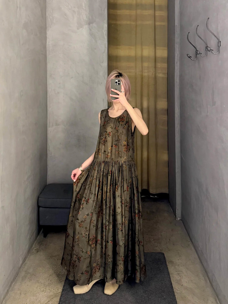 【高品质私服】【UW铜氨丝复古小碎花背心连衣裙】奢雅触感,亲肤悦己,释放随性洒脱之美G1287【无标出货 介意慎拍】CC