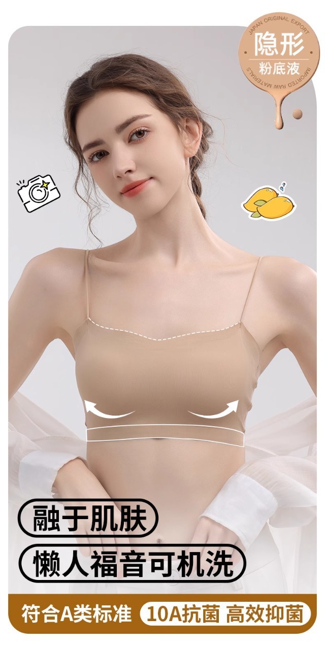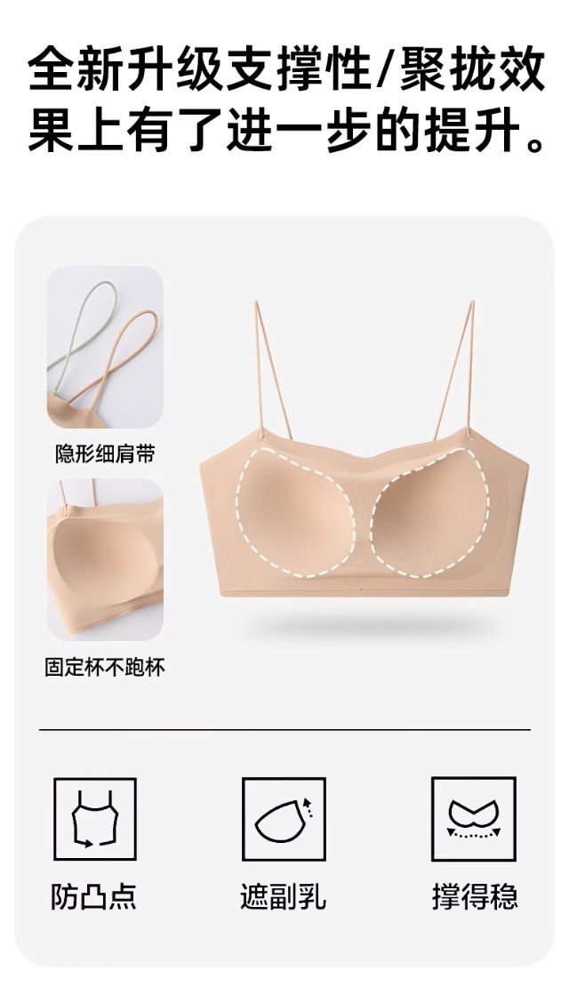 【GZ】无忧购59元2件粉底液无痕美背内衣抹胸细肩带光面一字围上托文胸3012(截单后3-5天发货)