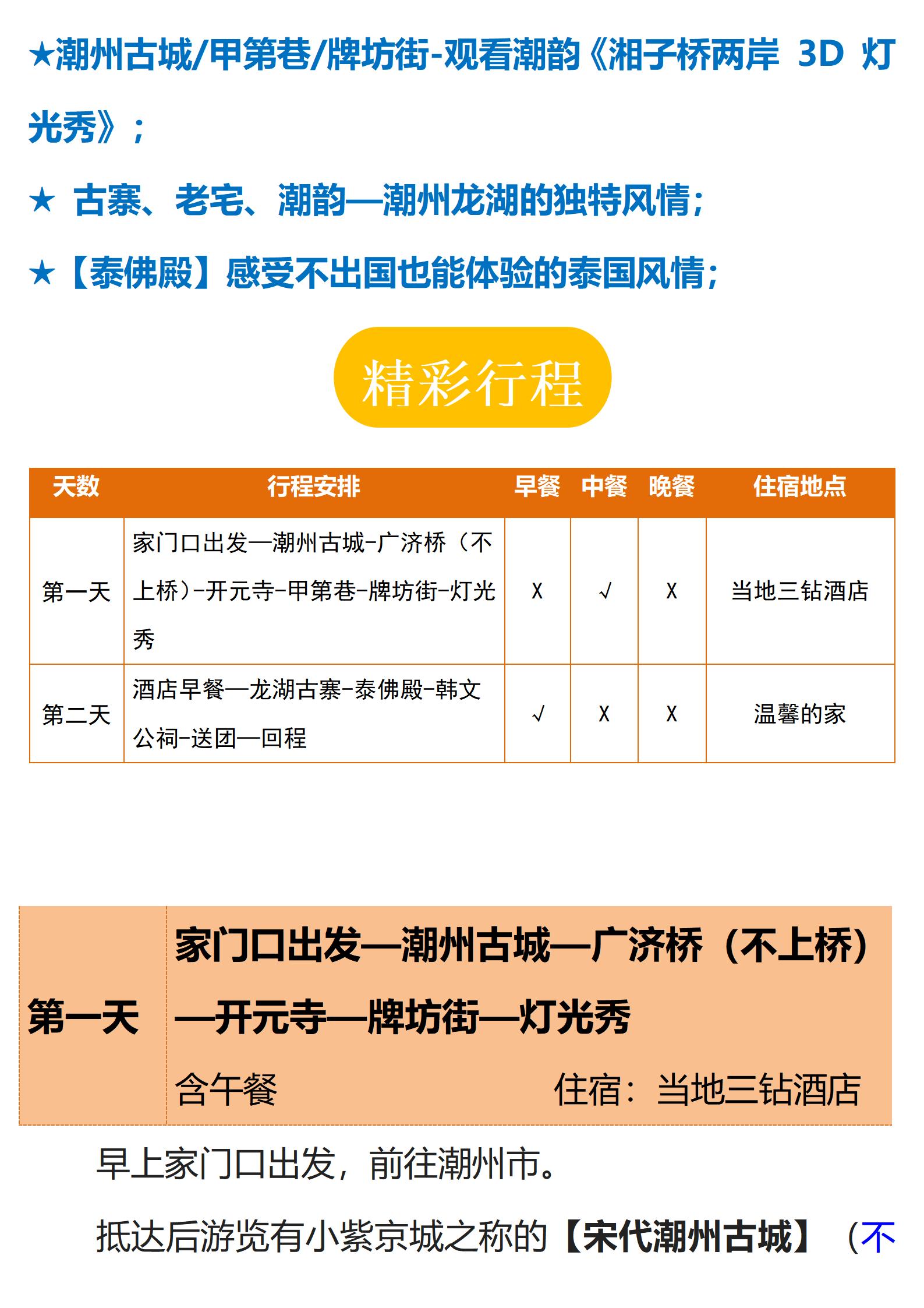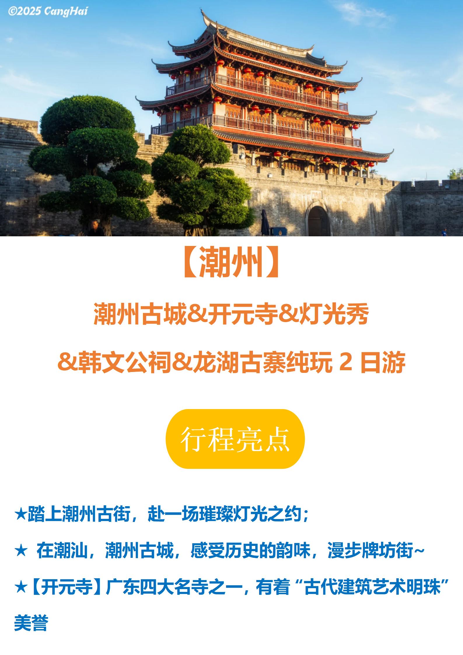 【潮州】 潮州古城&开元寺&灯光秀 &韩文公祠&龙湖古寨纯玩2日游
