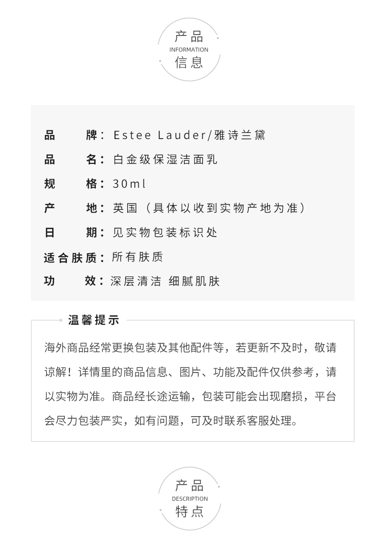 奢华养肤级!雅诗兰黛白金洁面氨基酸深度清洁卸妆保湿不拔干30ml中小样