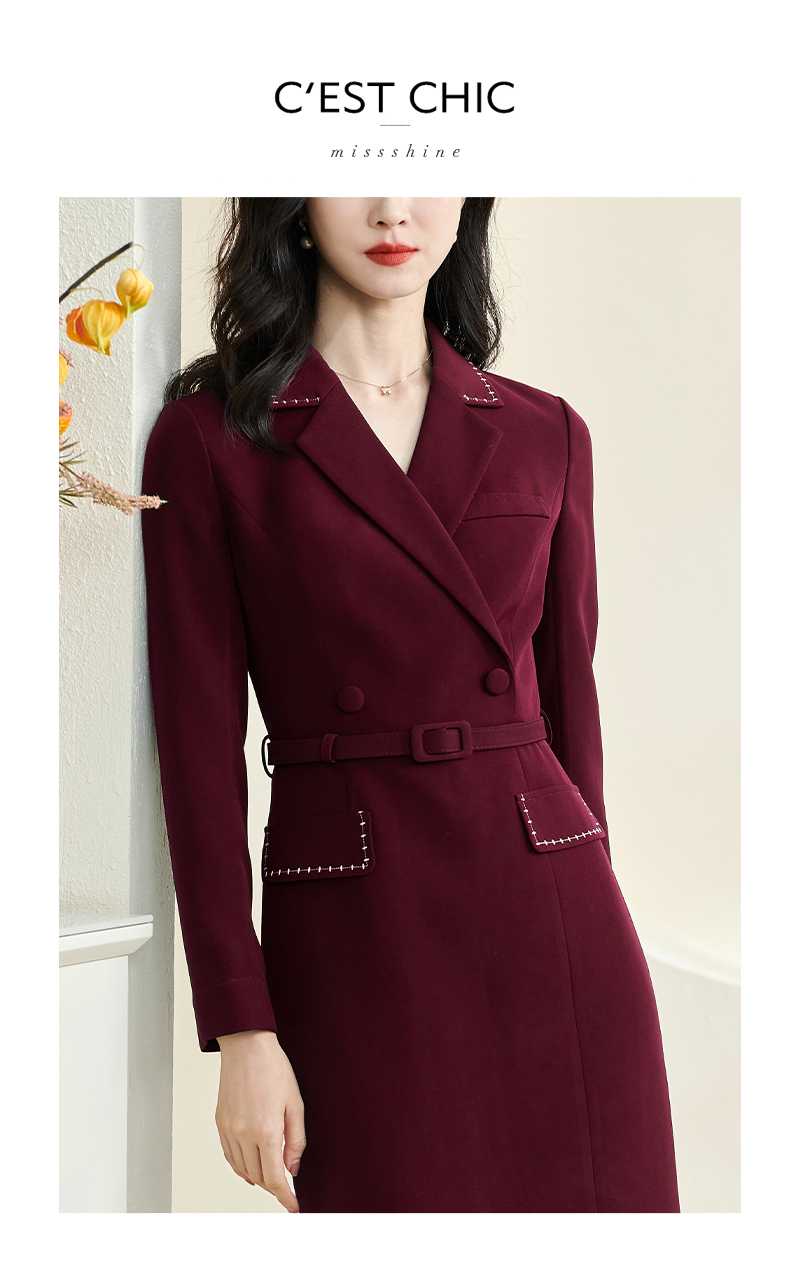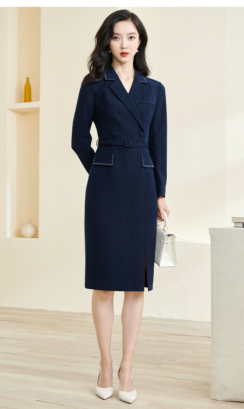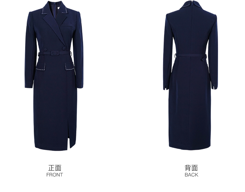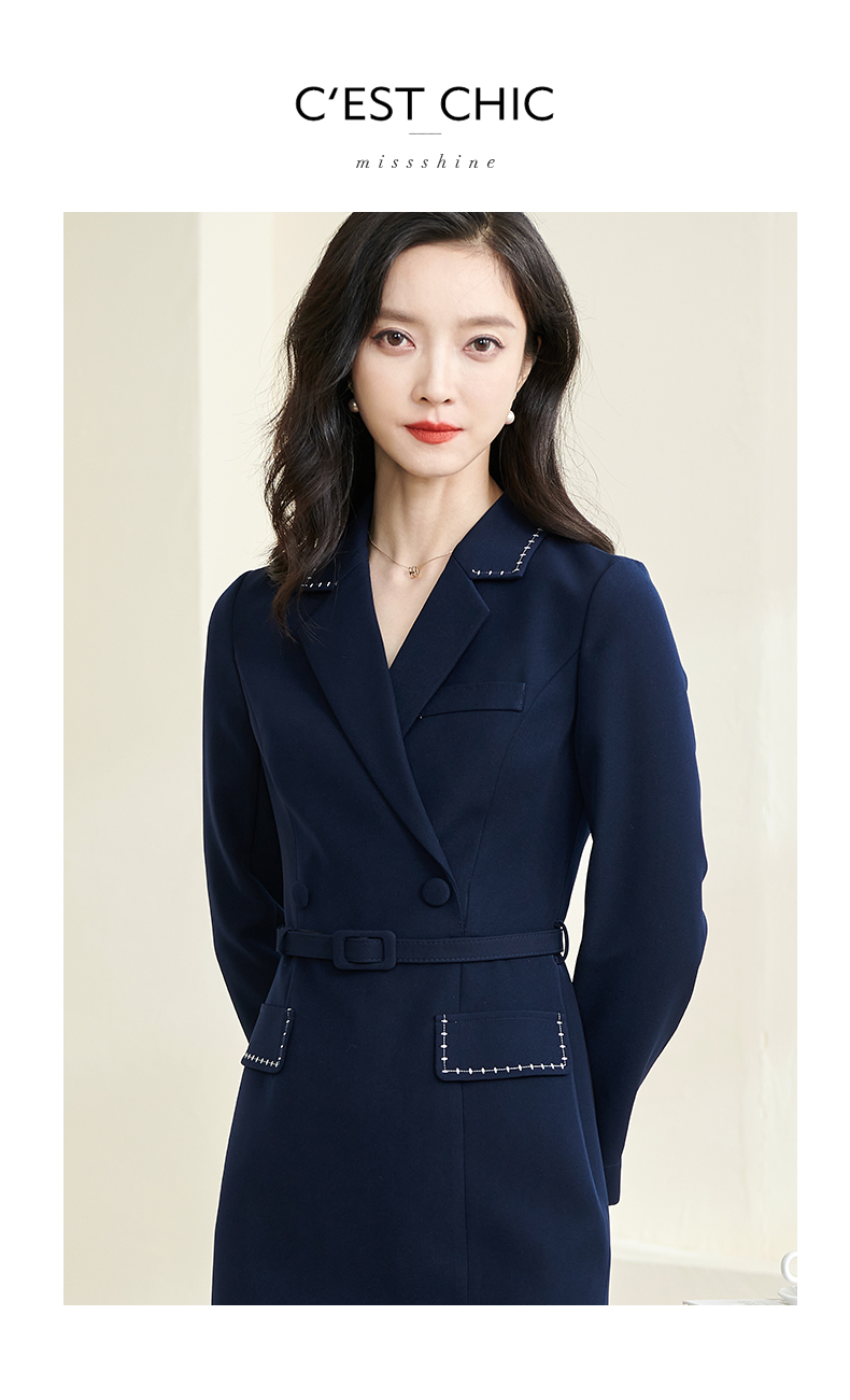 「深海谧蓝」西装裙 优雅满溢 米思阳2026春季新款气质通勤挺阔西装连衣裙修身收腰中长裙子2737