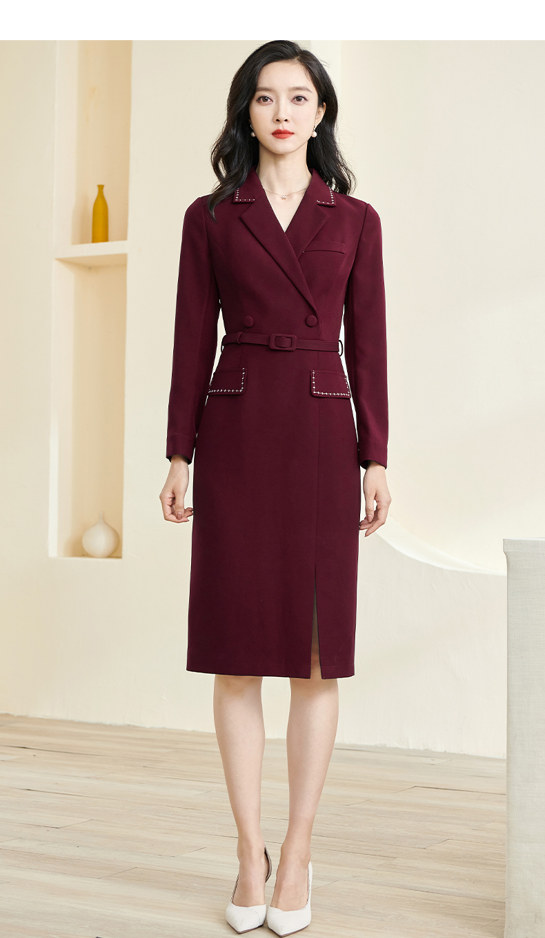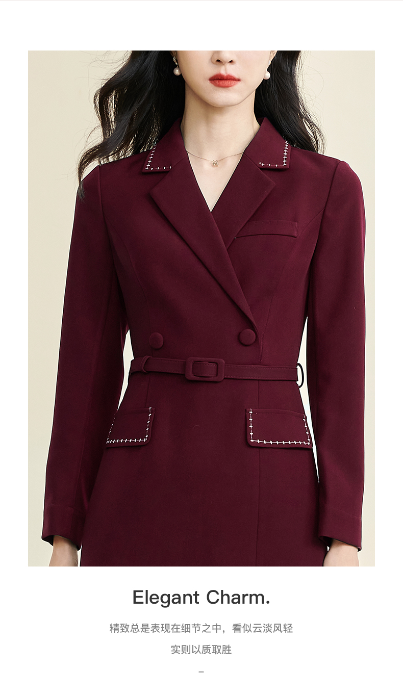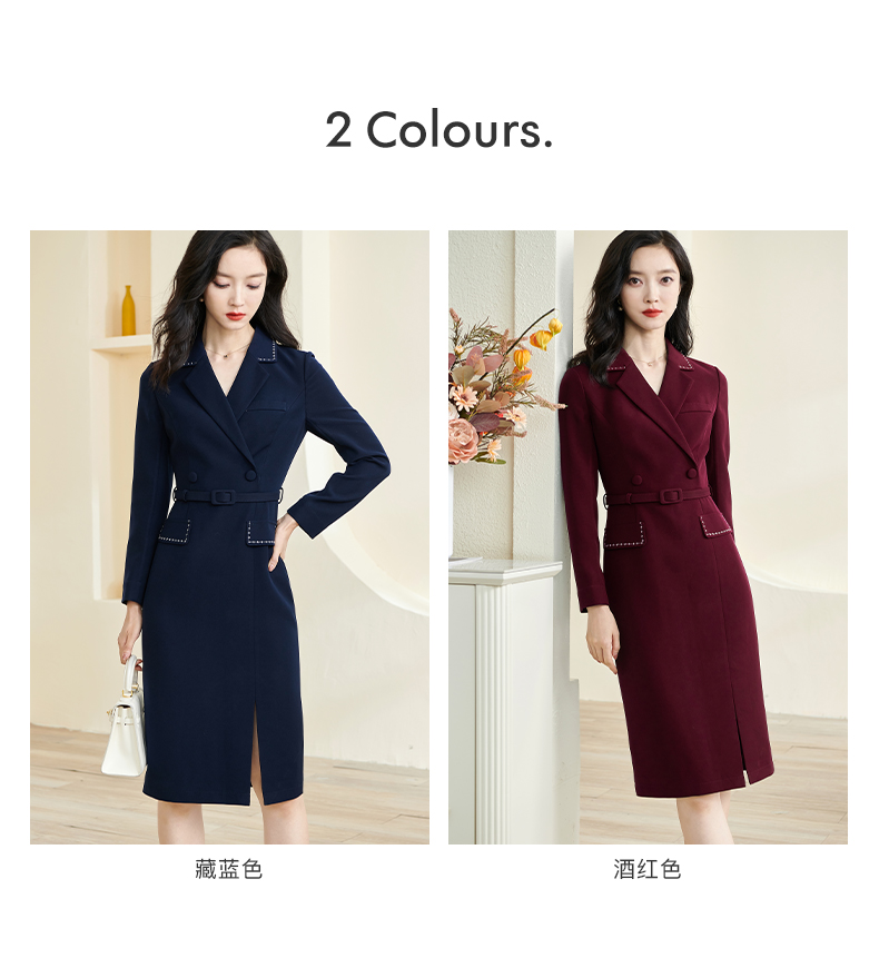「深海谧蓝」西装裙 优雅满溢 米思阳2026春季新款气质通勤挺阔西装连衣裙修身收腰中长裙子2737