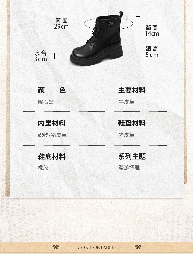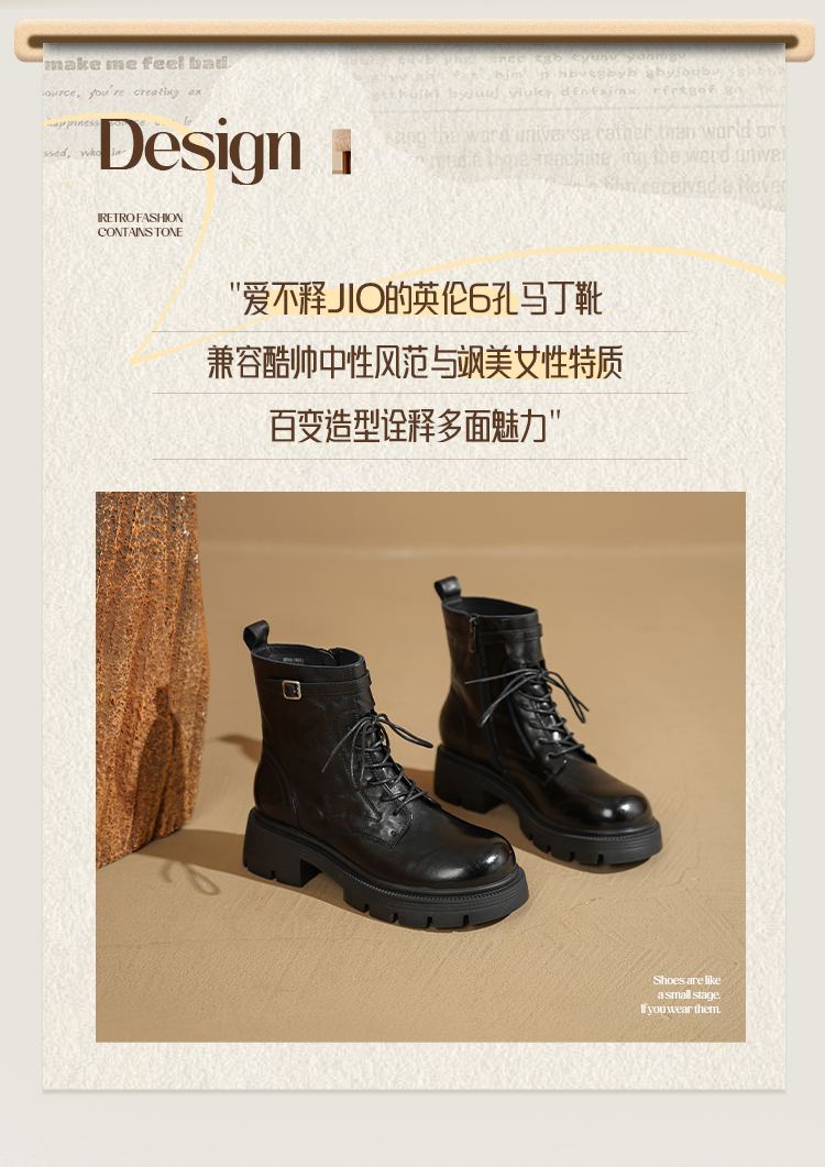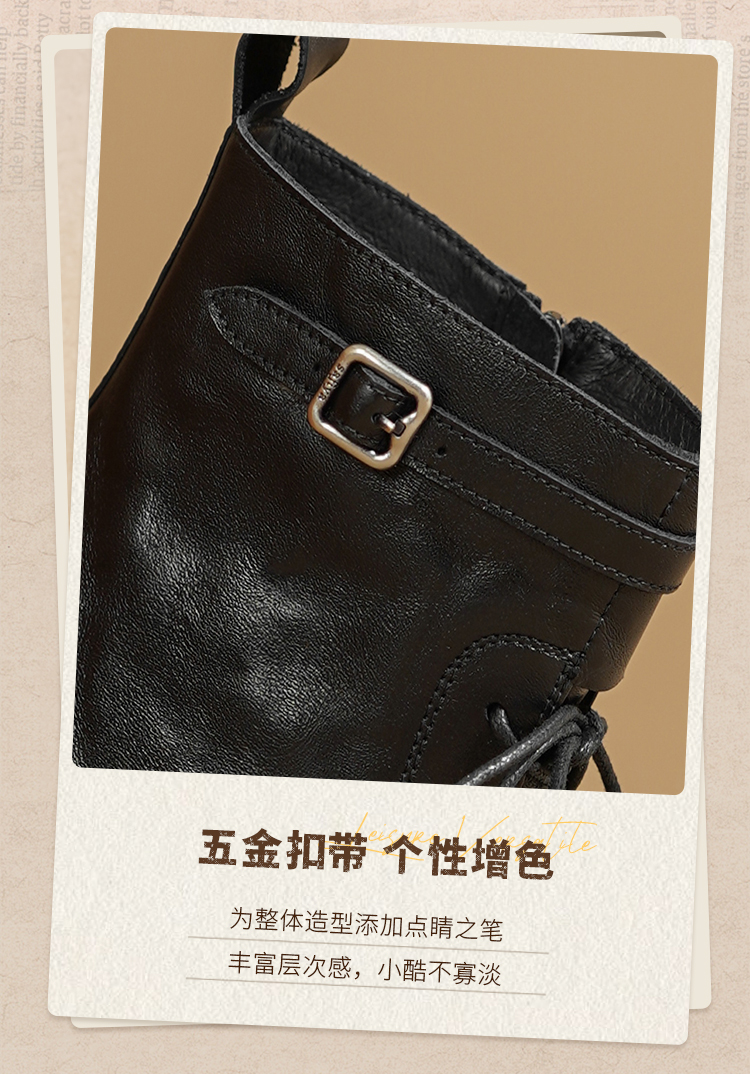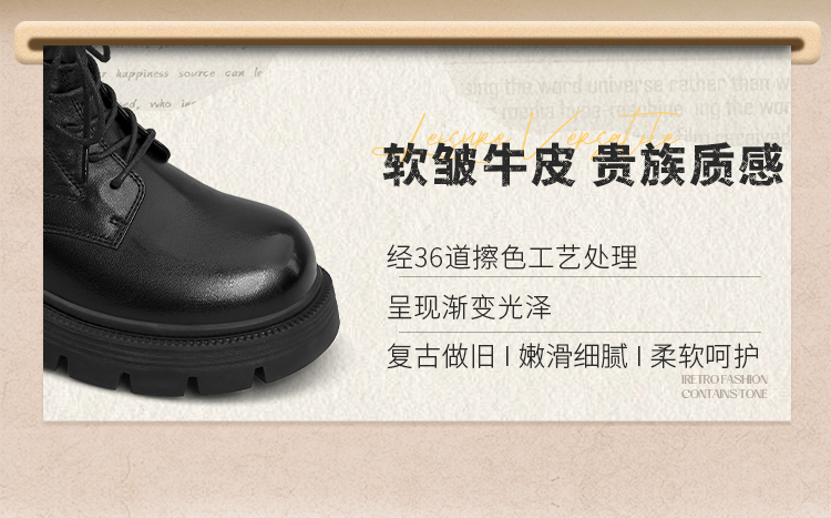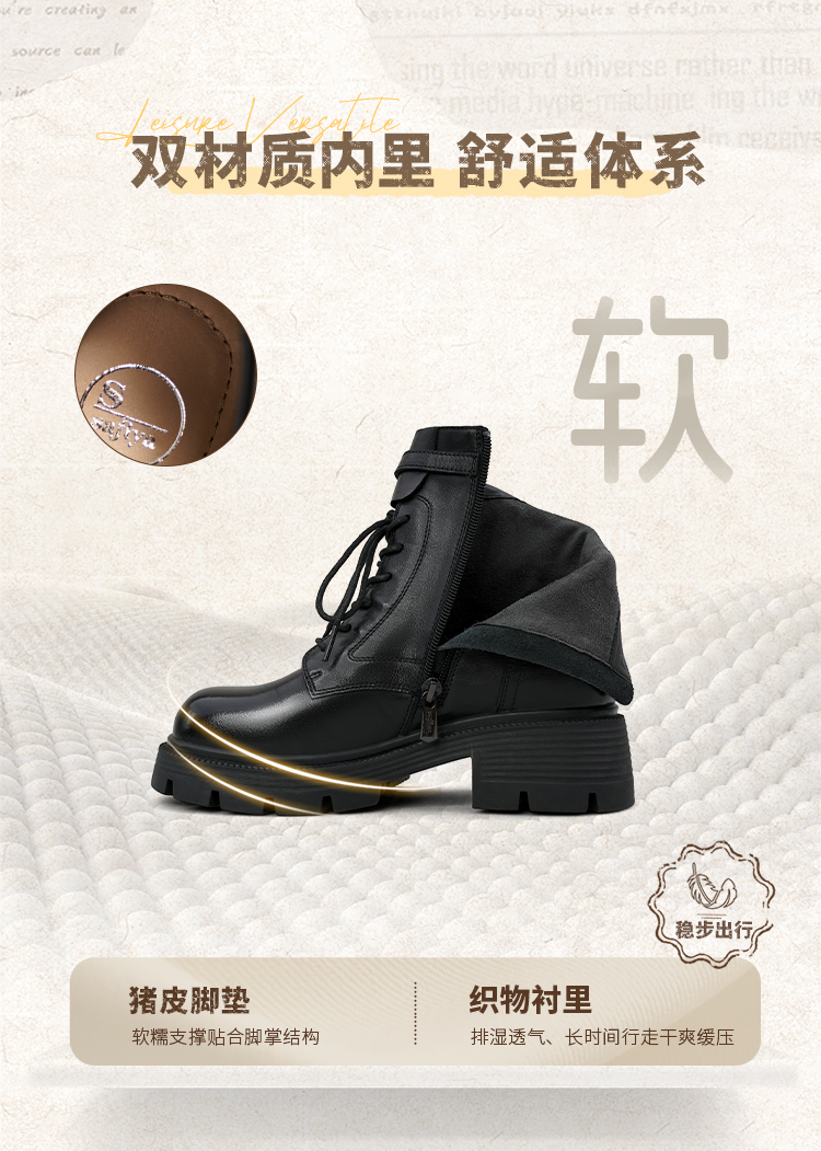 Safiya/索菲娅2025秋冬百搭圆头真皮头层牛皮厚底休闲粗跟显瘦英伦马丁靴SFD4116033