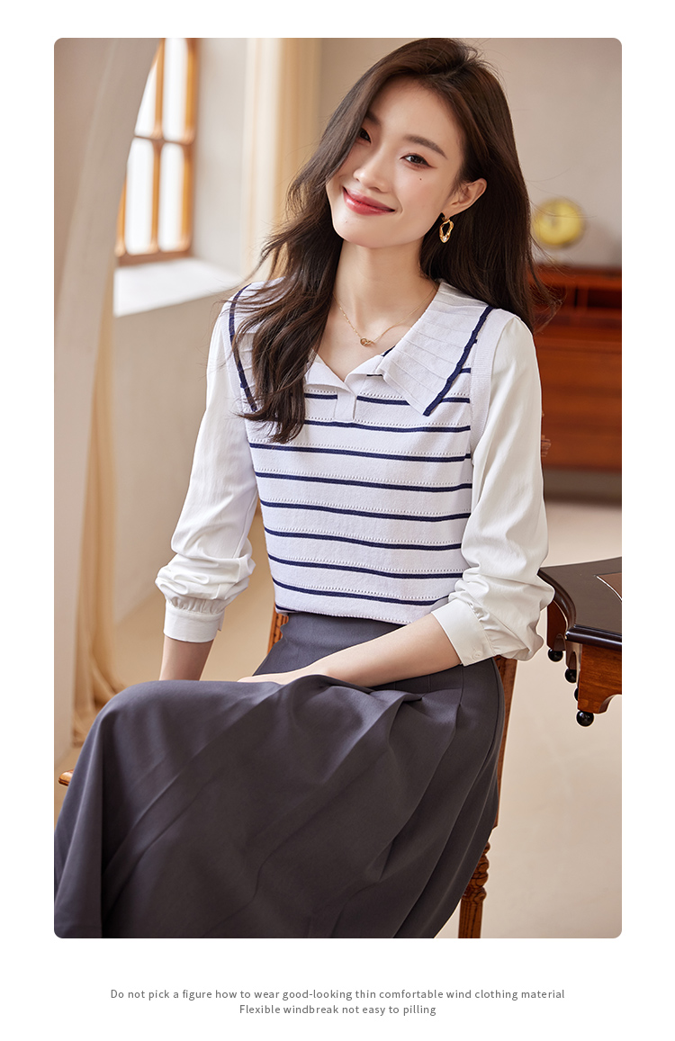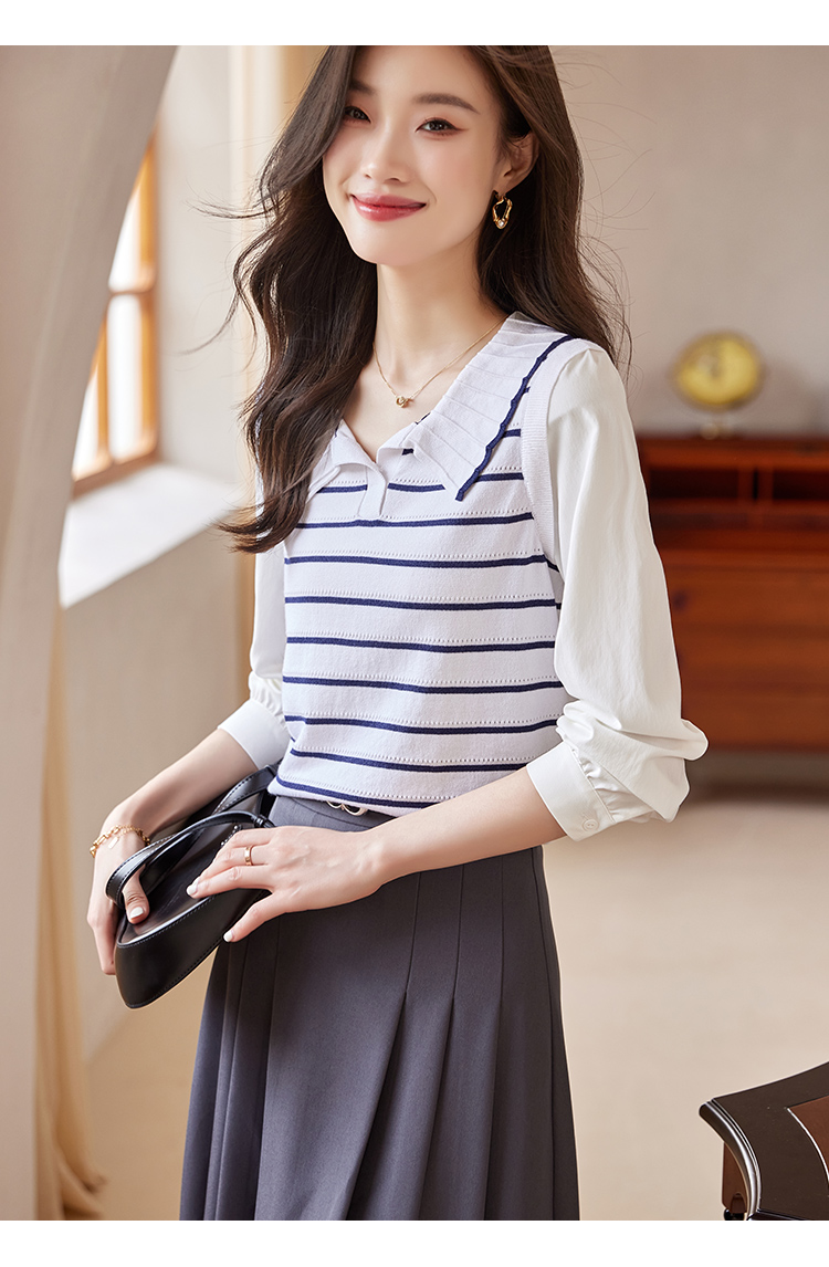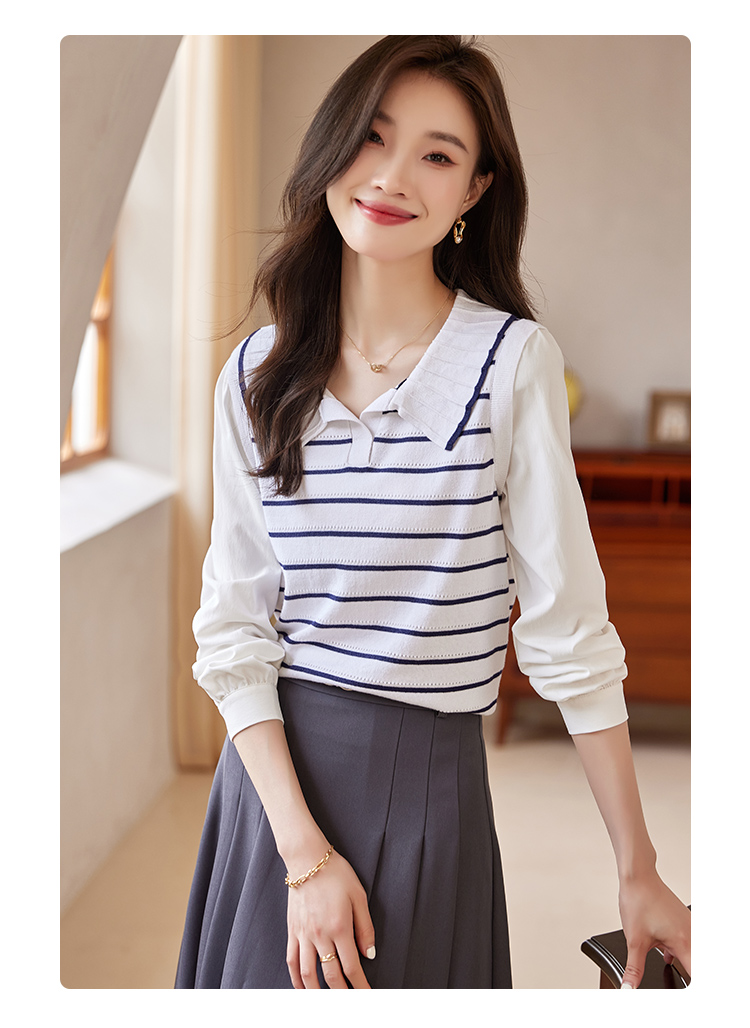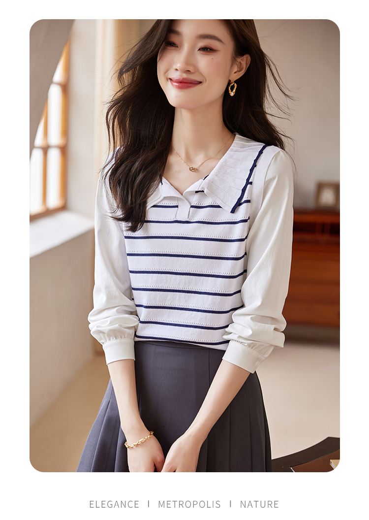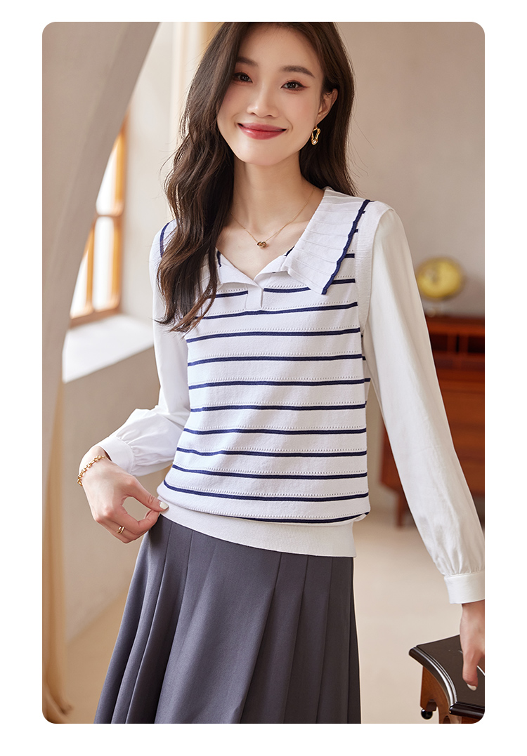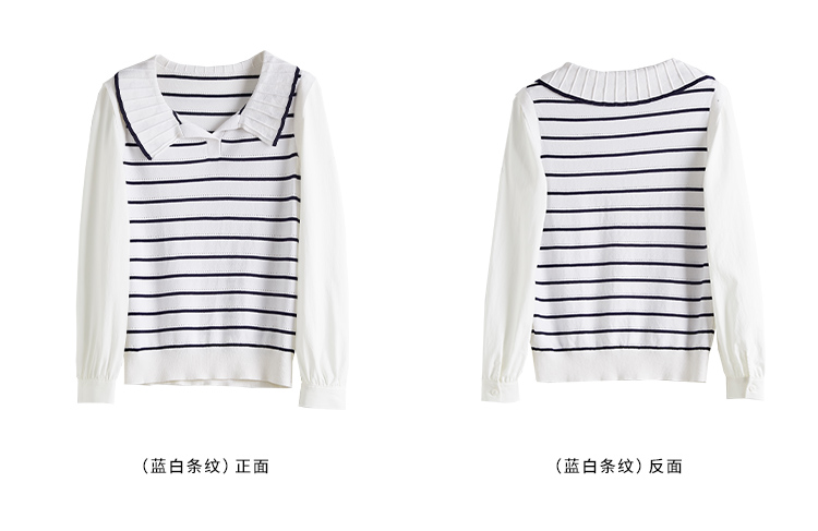 【专属特价】熙世界2025秋新款撞色条纹海军领针织衫女设计感假两件长袖上衣