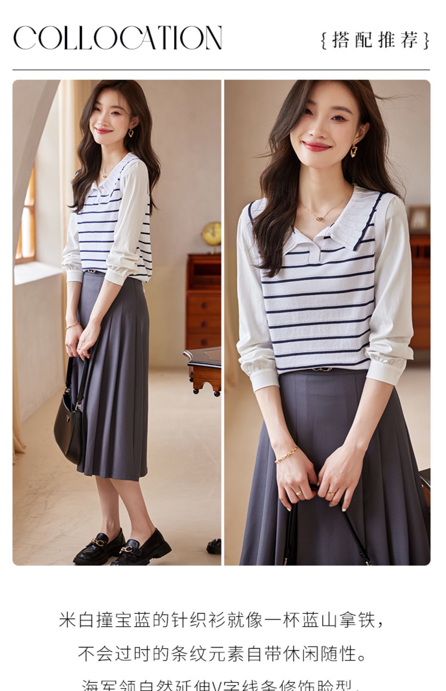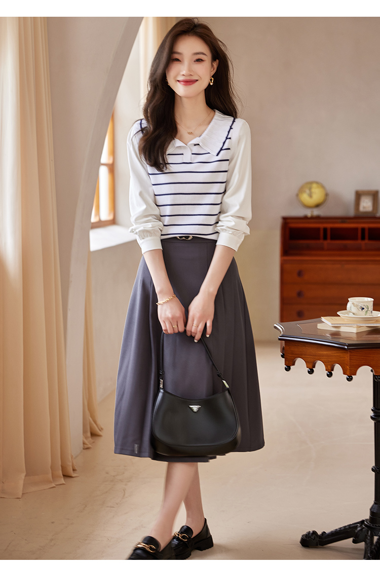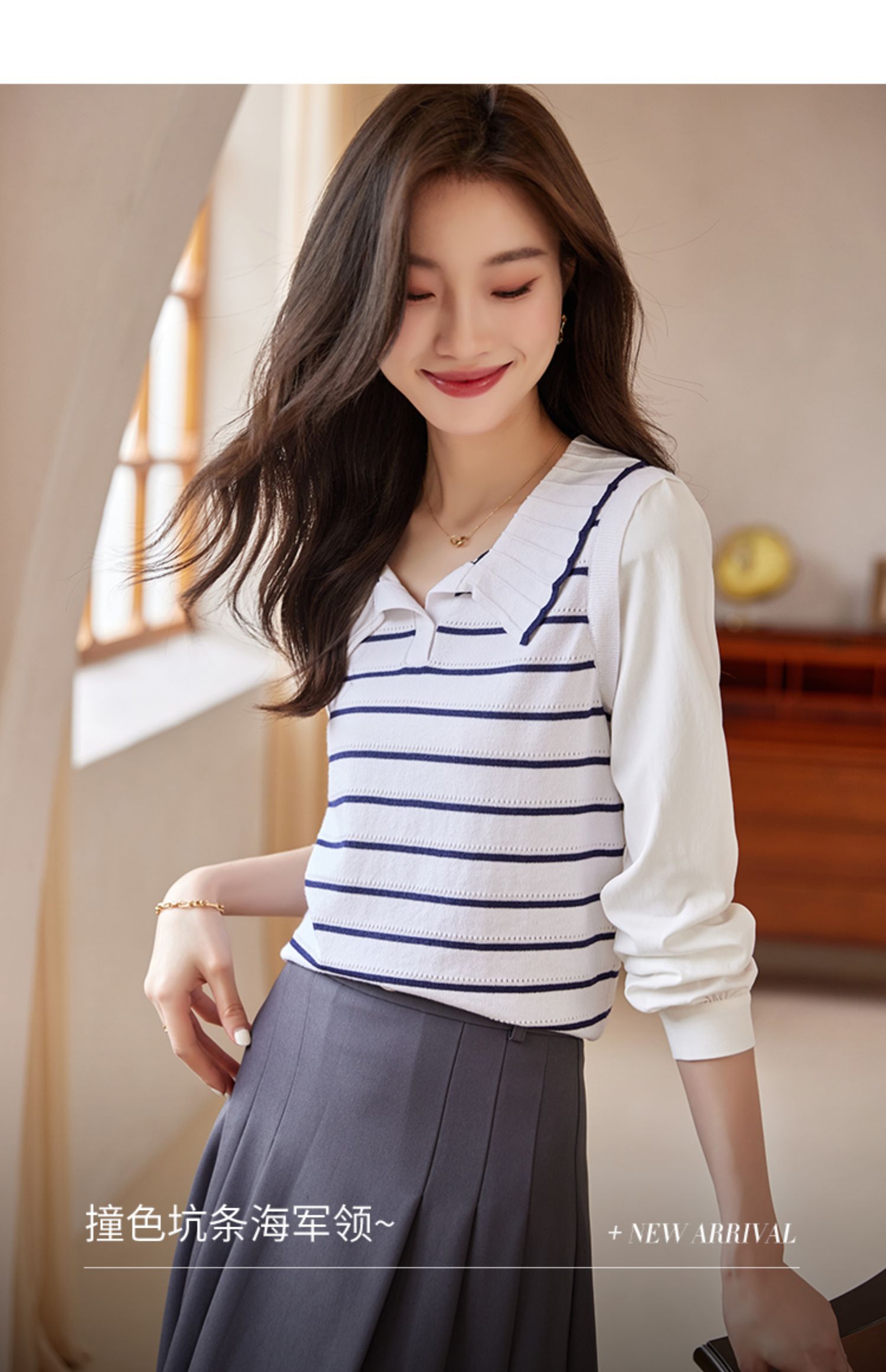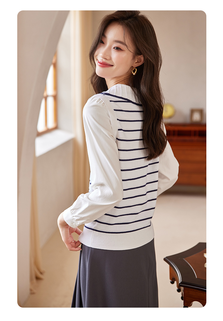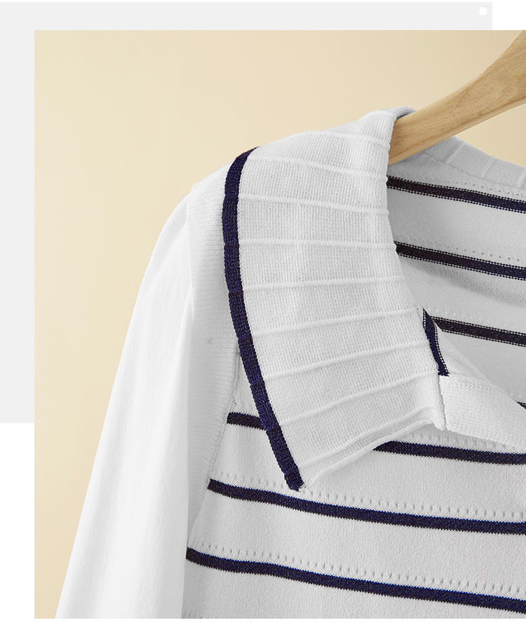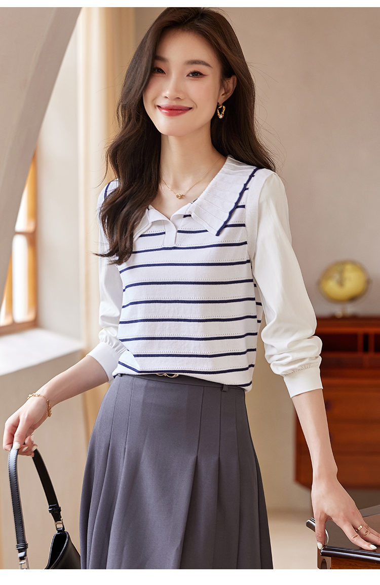 【专属特价】熙世界2025秋新款撞色条纹海军领针织衫女设计感假两件长袖上衣