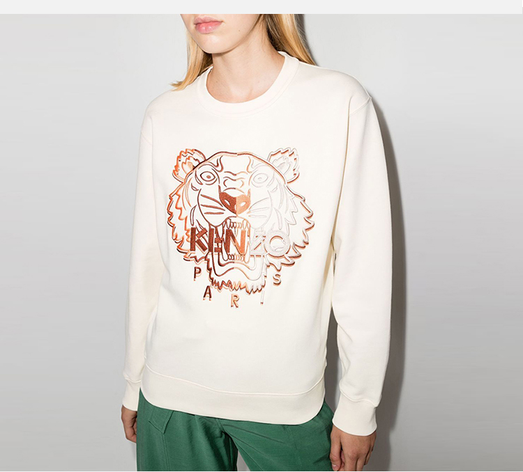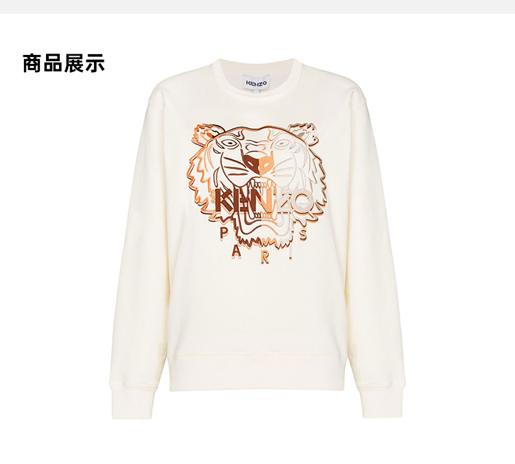 KENZO 高田贤三 女士棉质经典大虎头印花圆领长袖卫衣 米黄色 FC62 SW824 4XF 04