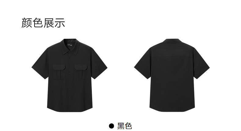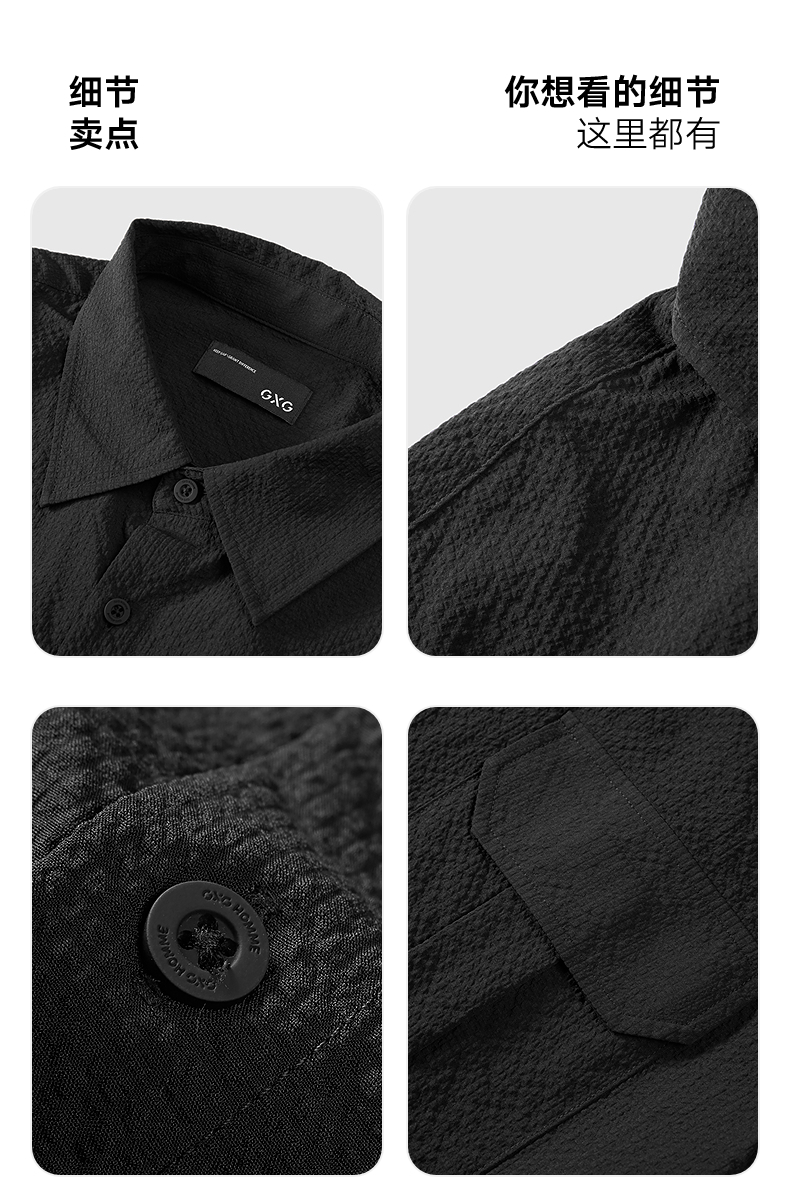 GXG男装 黑色工装设计短袖衬衫通勤男轻薄外套防晒 2025春季热卖