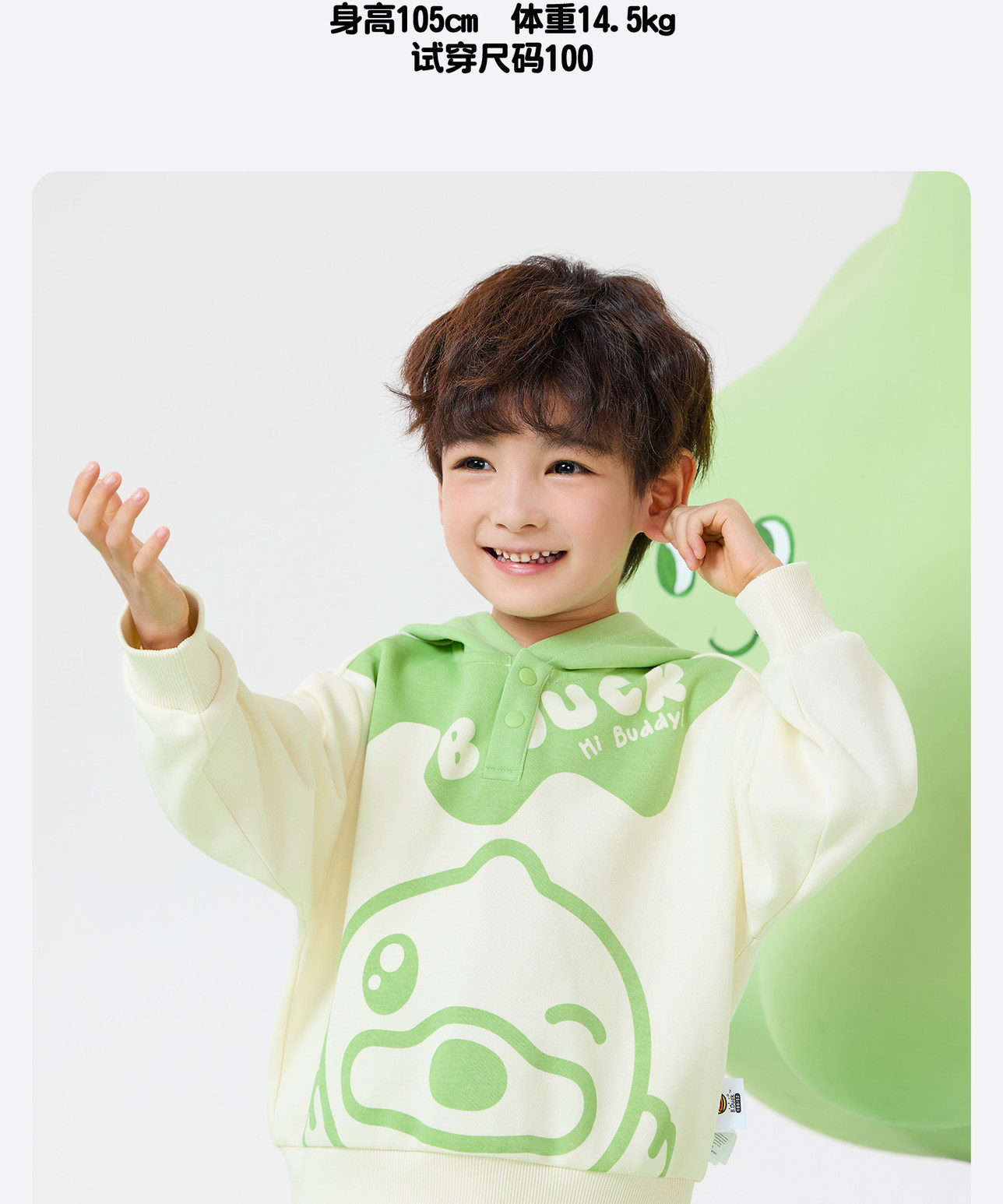 bduck小黄鸭童装春秋男童卫衣儿童上衣宝宝连帽衫休闲90-130 BF1608019