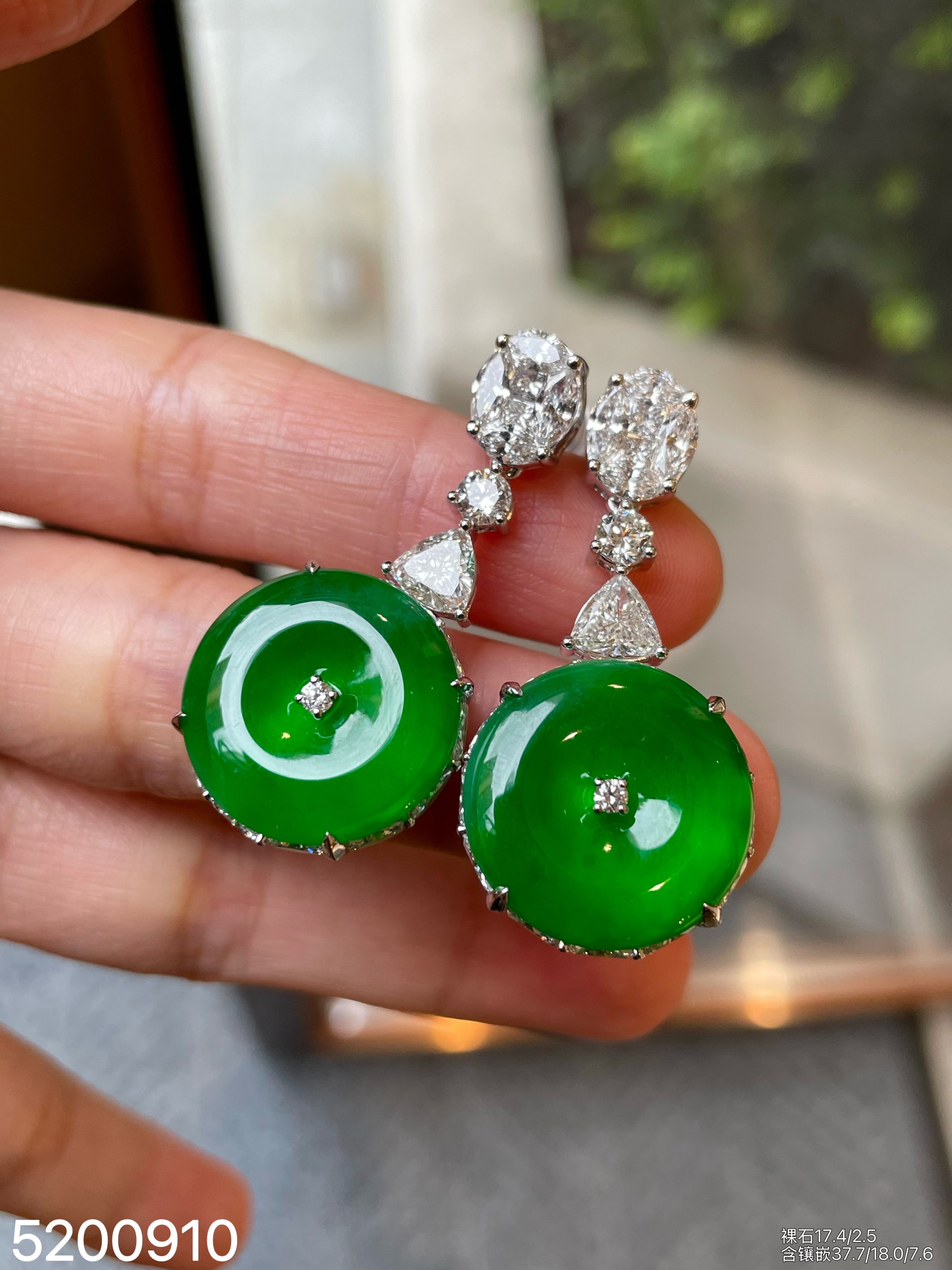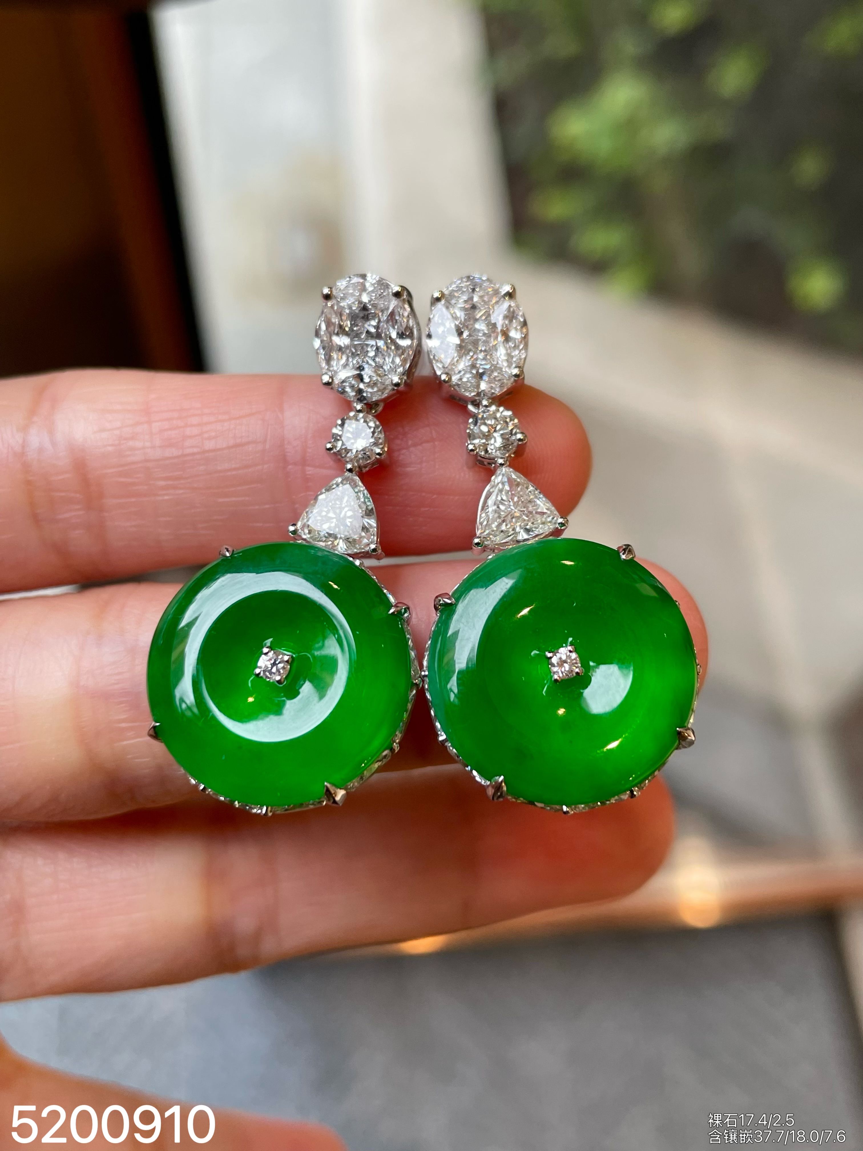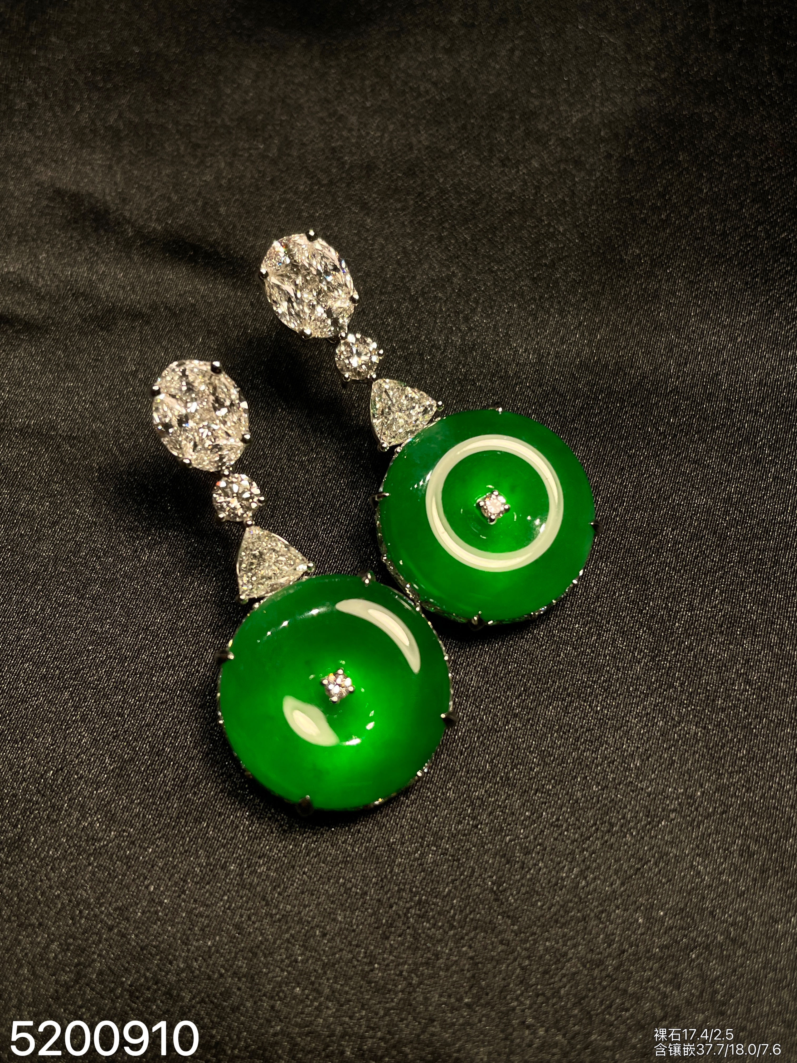 高冰种艳绿平安扣耳坠【5200910】具体价格微信咨询