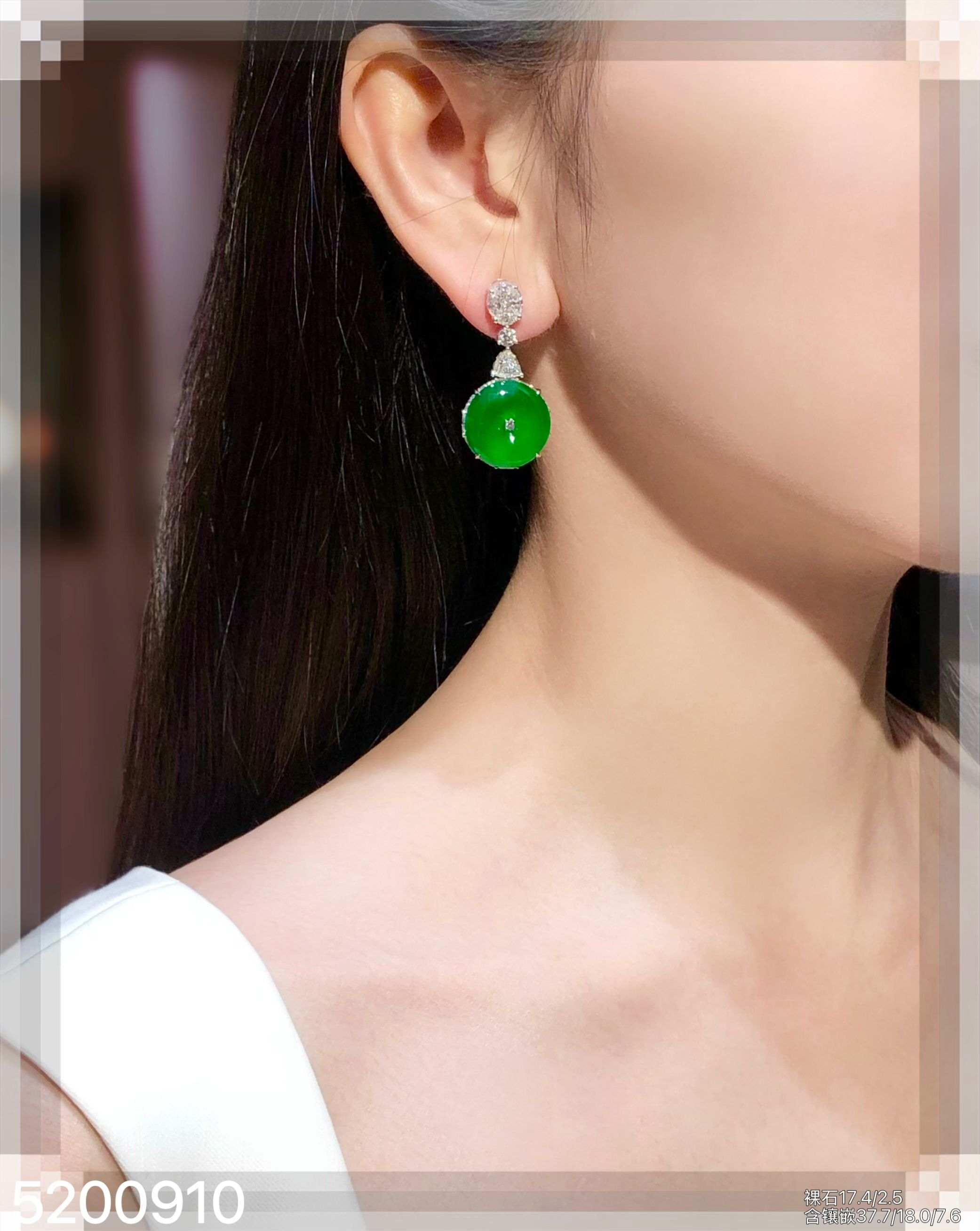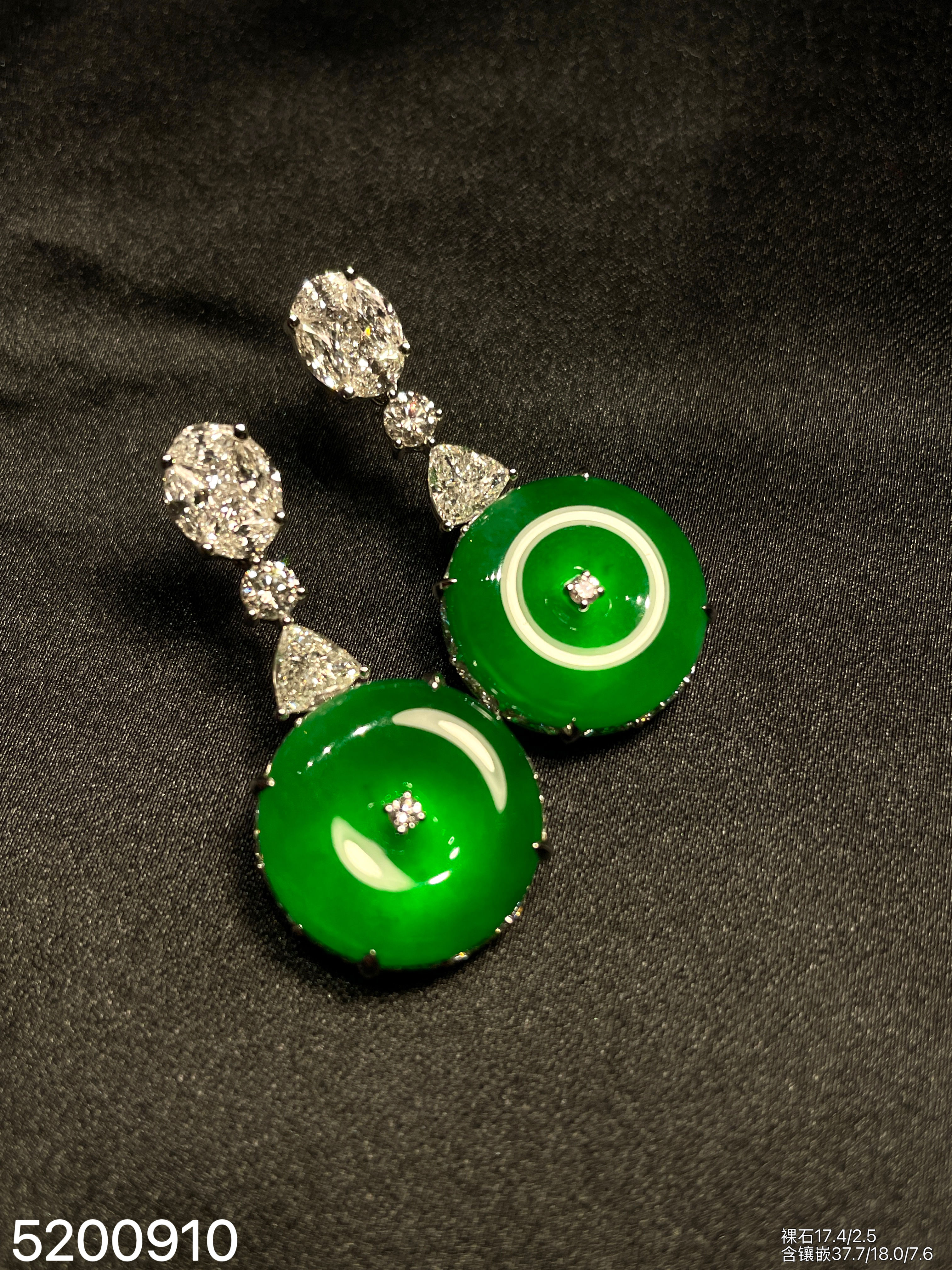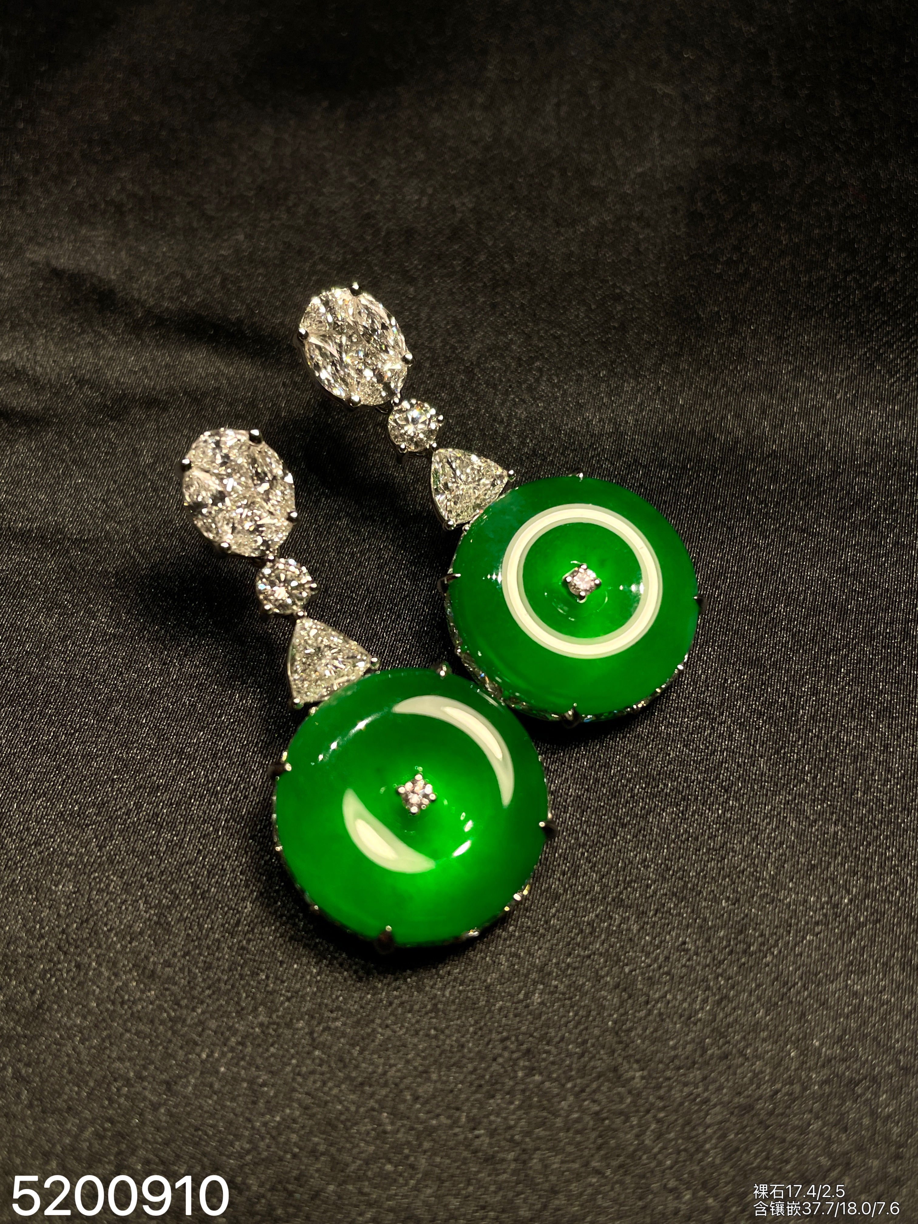 高冰种艳绿平安扣耳坠【5200910】具体价格微信咨询