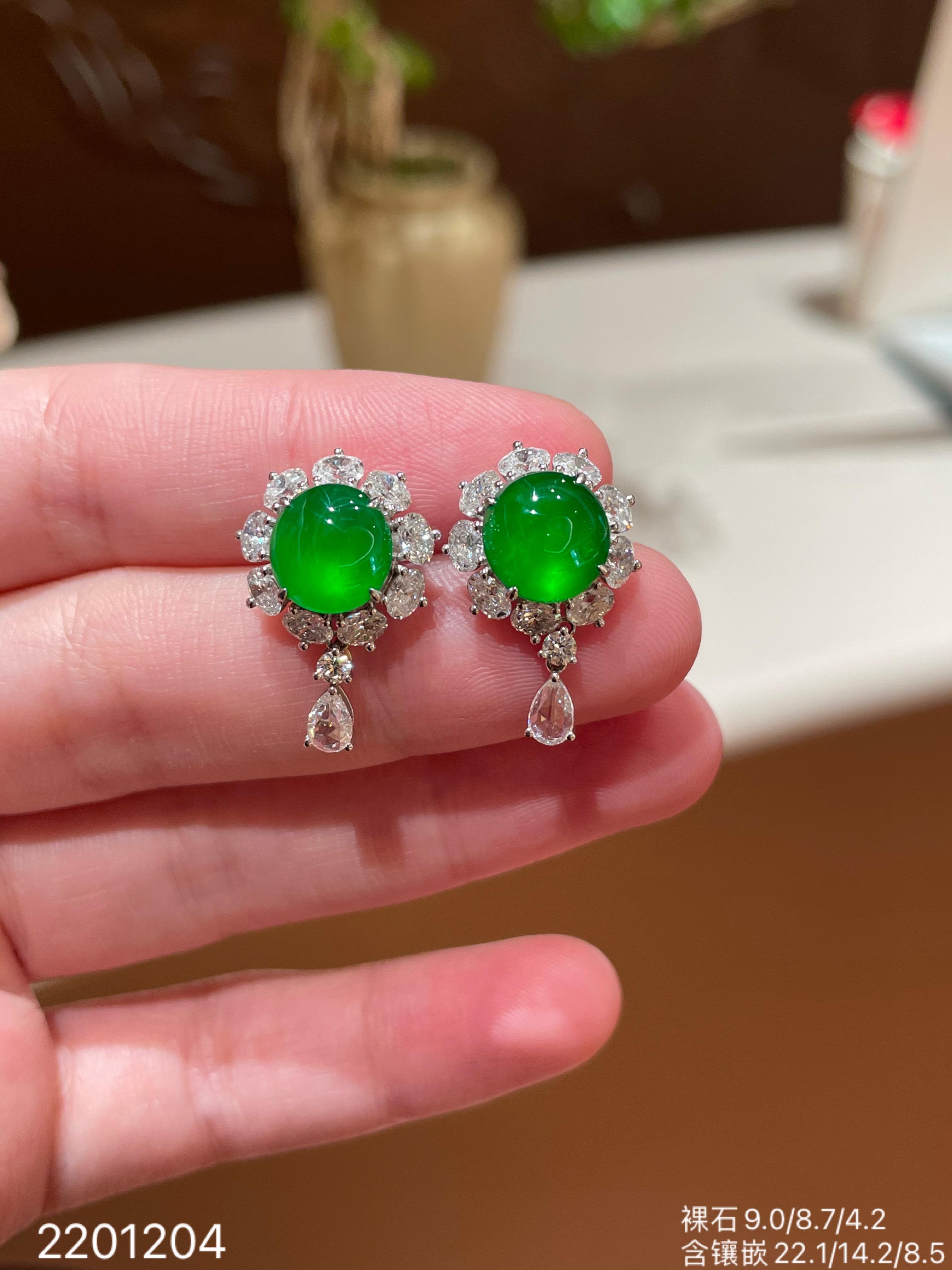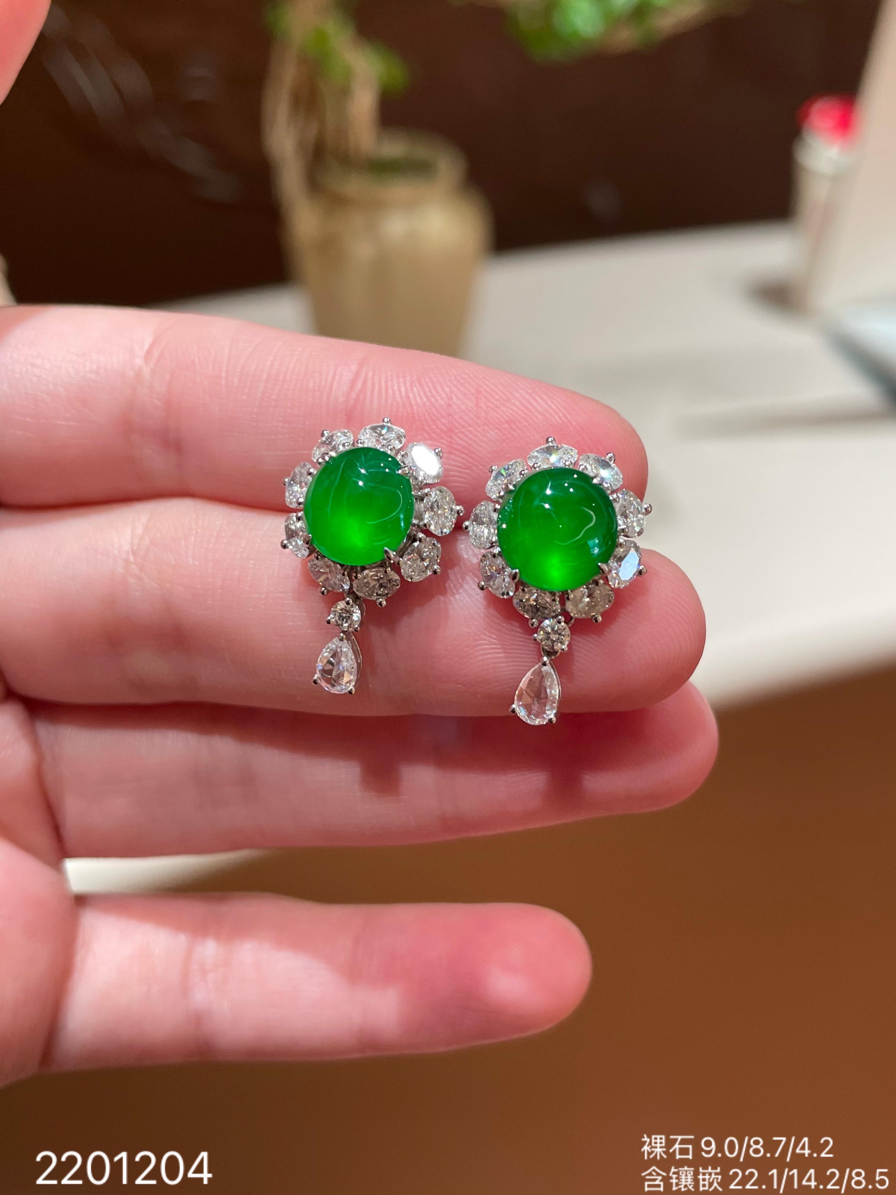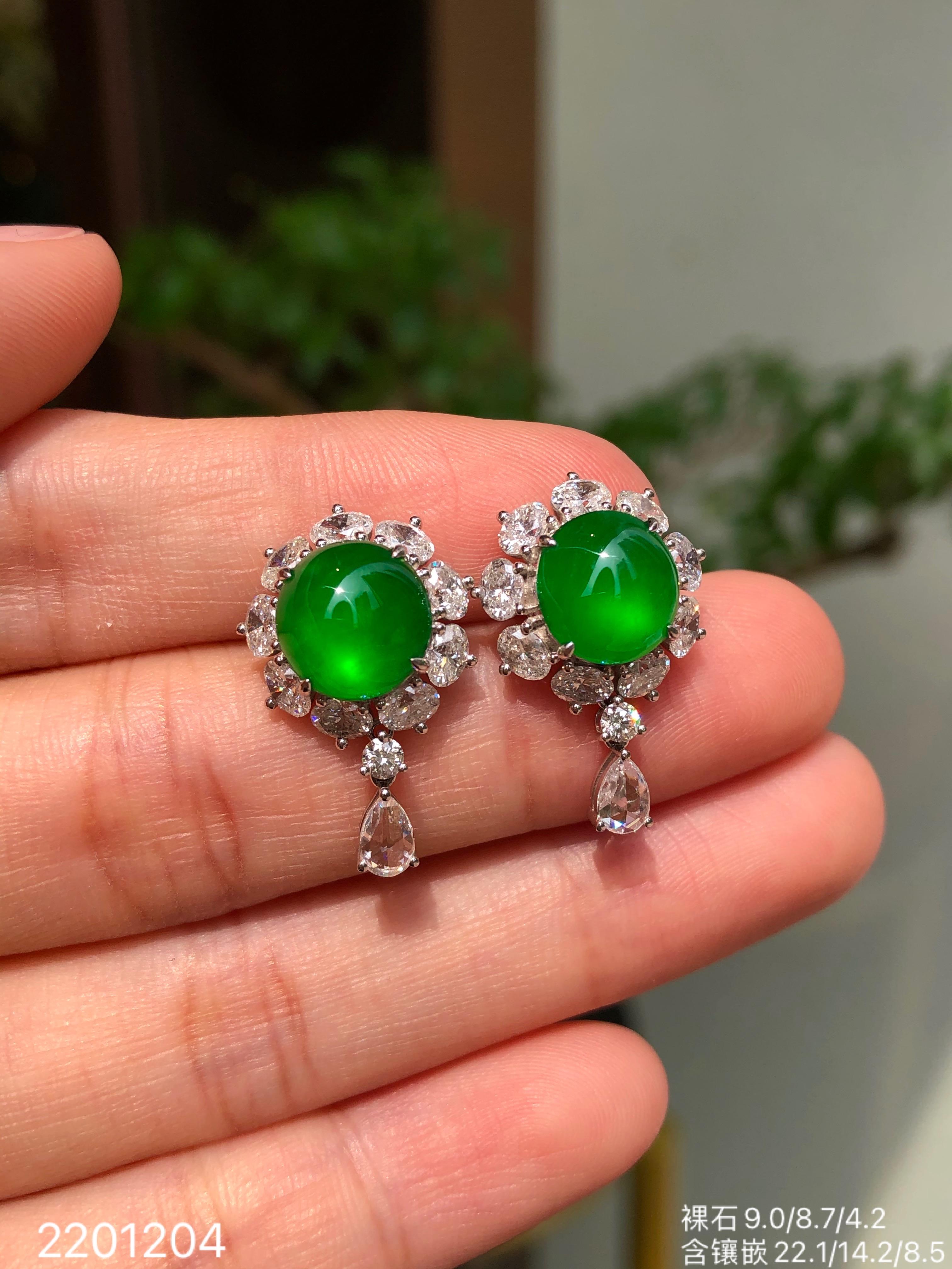 107-2201204,玻璃艳绿蛋面耳钉。具体价格微信咨询