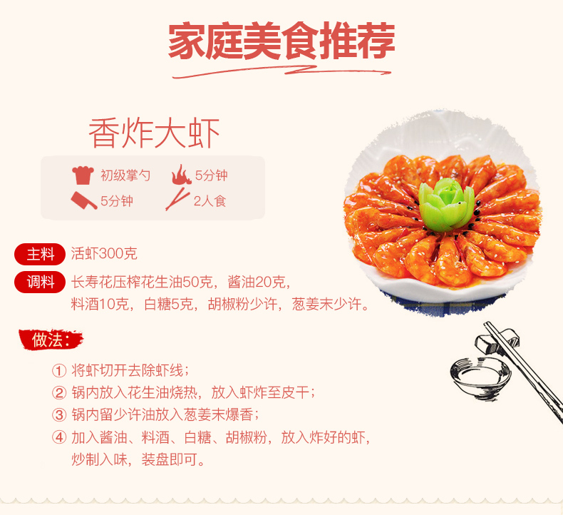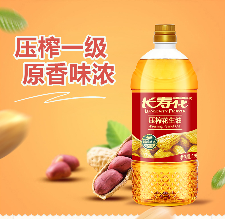 长寿花压榨花生油1L*1食用油小瓶体验装物理压榨一级浓香植物油