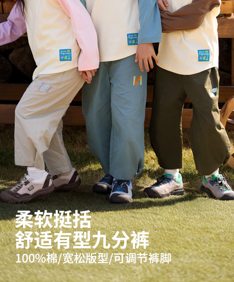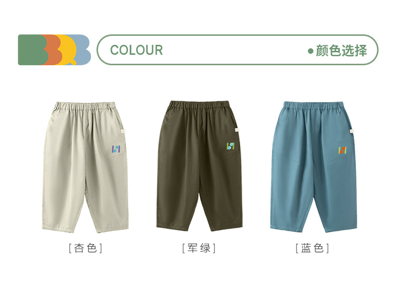 minizone-BBQB儿童休闲裤春装女童裤子纯色九分裤男童运动裤婴儿童装纯棉JB5110