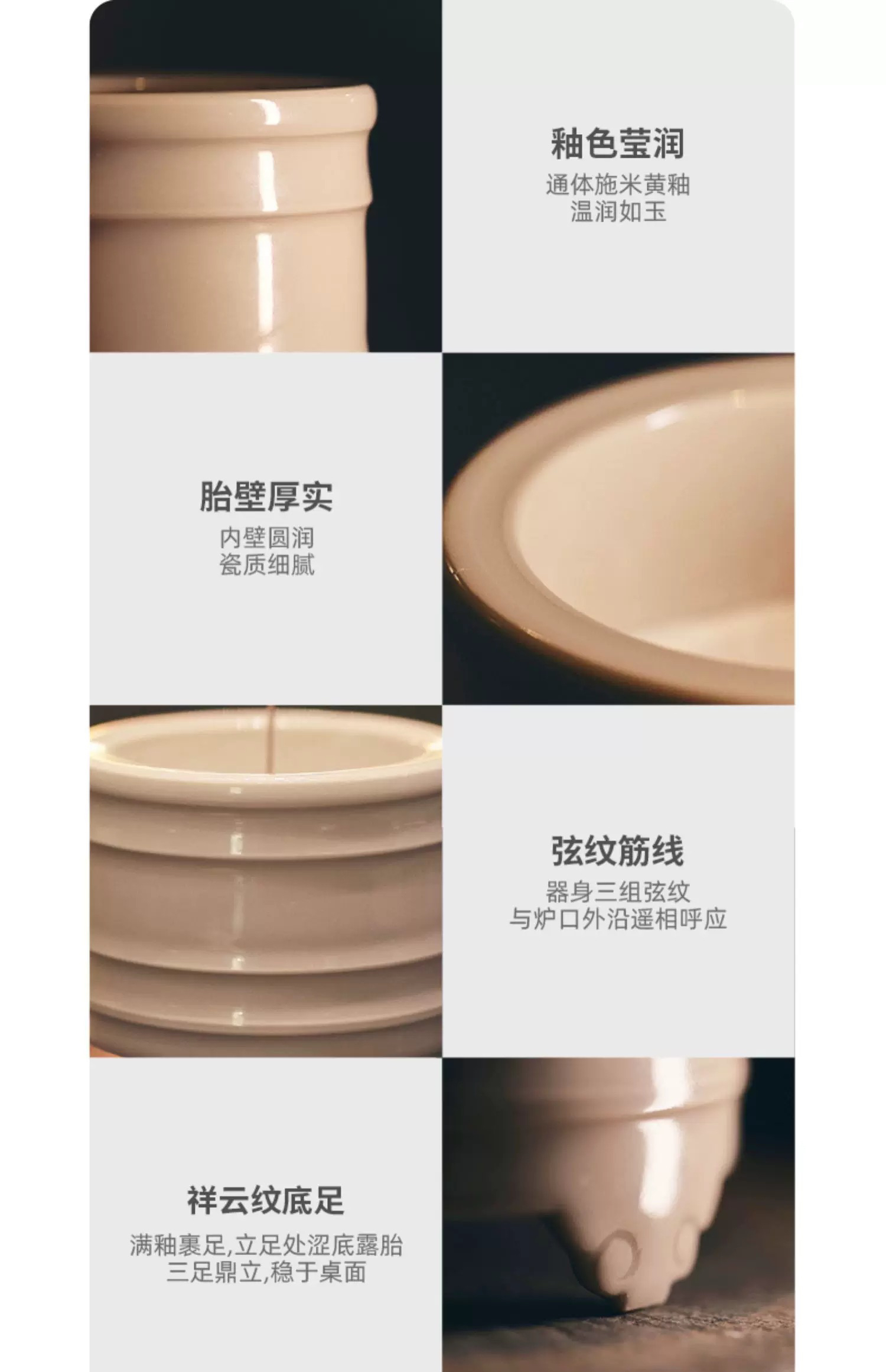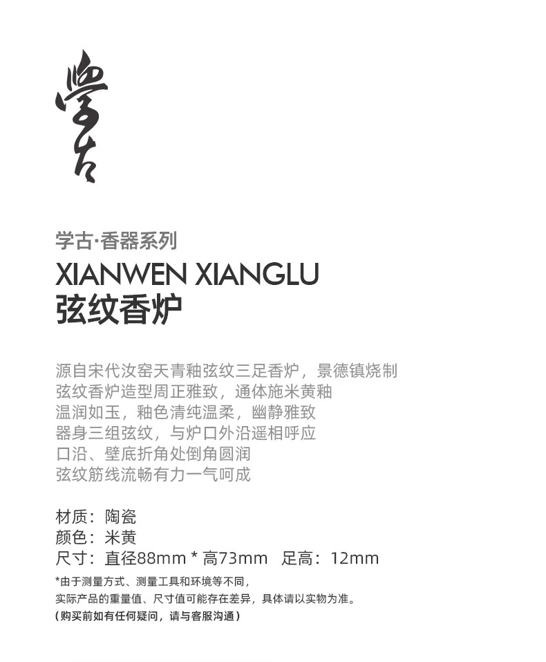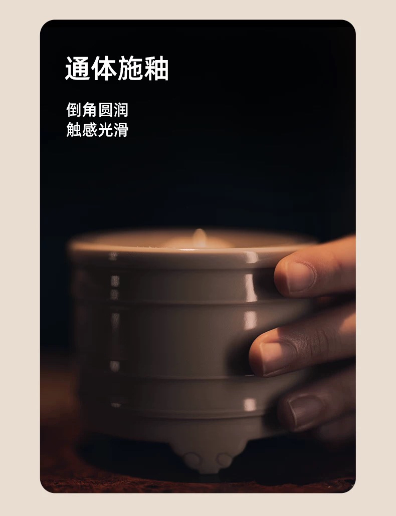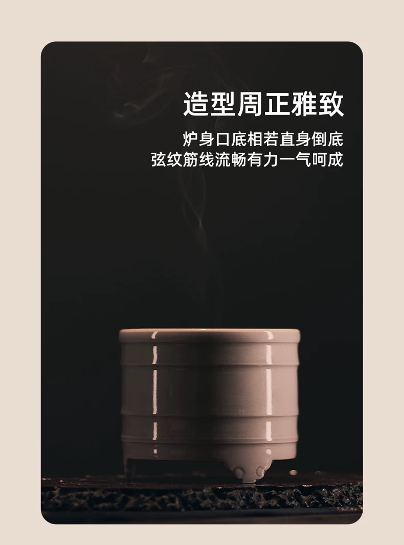 学古|弦纹香炉 景德镇陶瓷米黄釉工夫茶道香道专用空熏杯