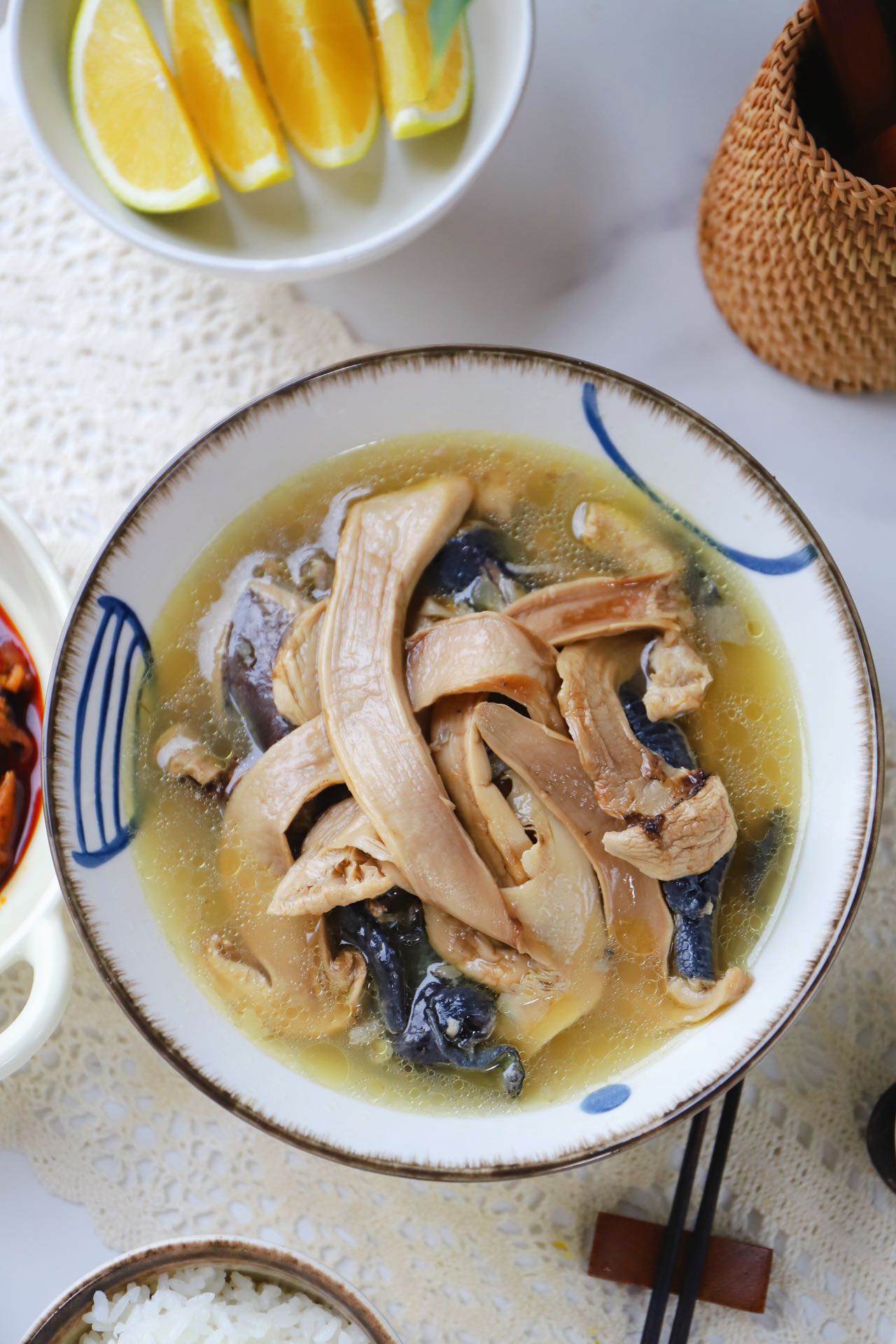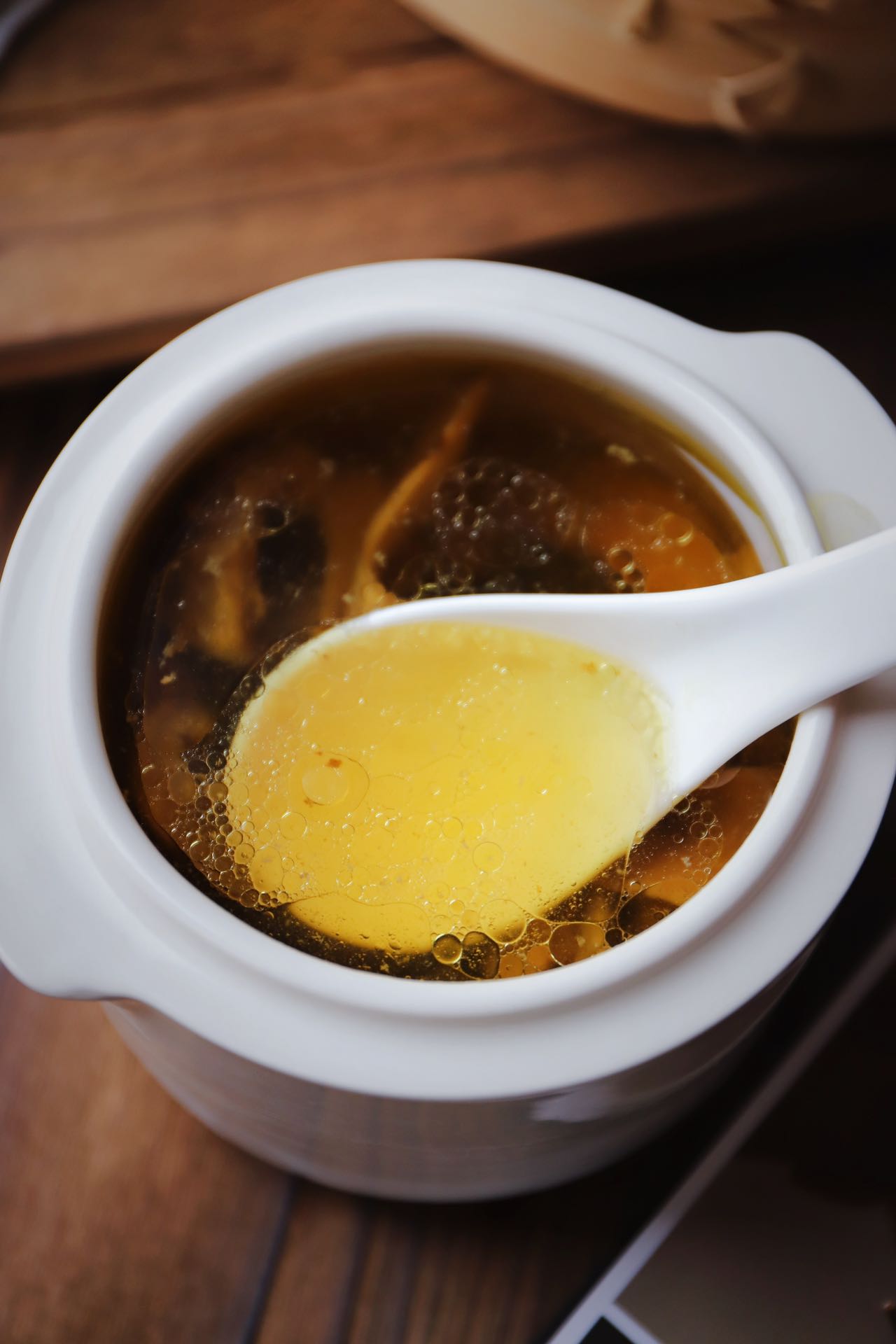 【干货泡发方法】活水先冲洗一下,50℃温水发泡10分钟即可,直接入锅与肉类一起炖上,发泡后的水静止10分钟后倒入锅中即可,一锅鲜美的菌汤锅就这么搞定了!