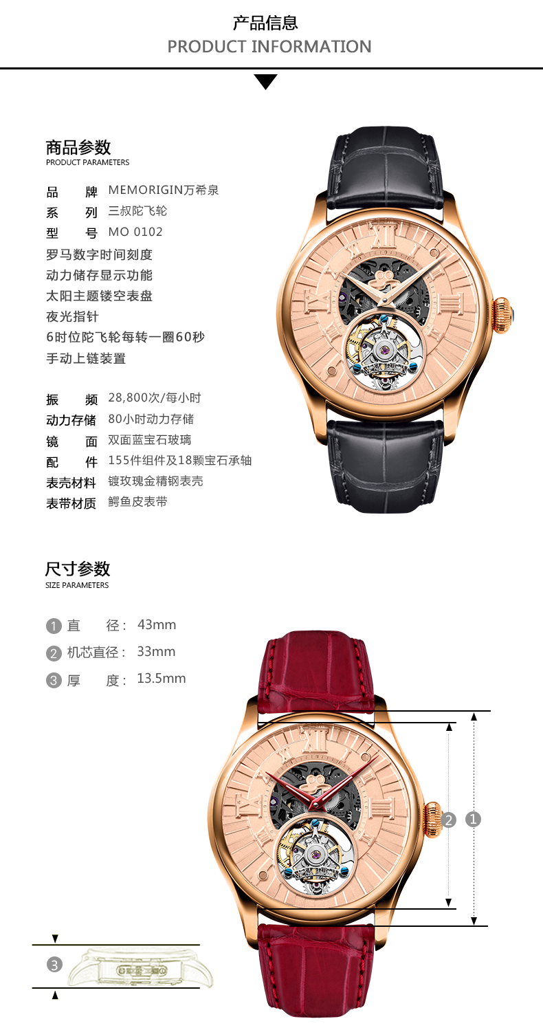 MEMORIGIN/万希泉手表 三叔陀飞轮 吴孟达同款 真皮手表