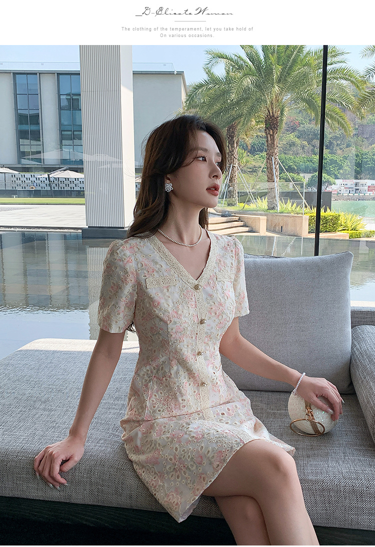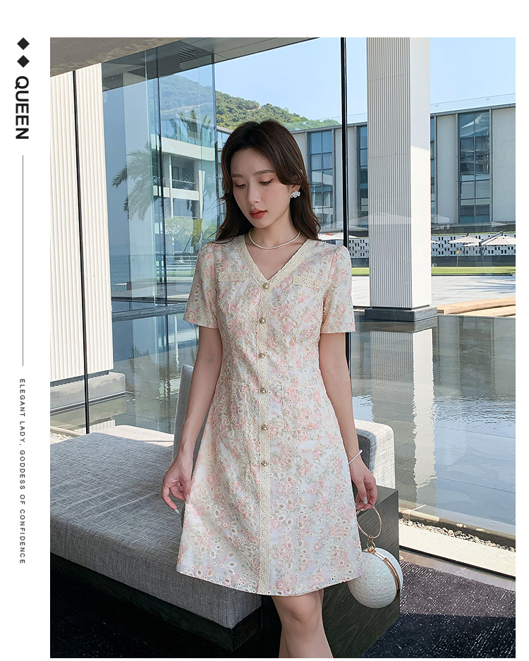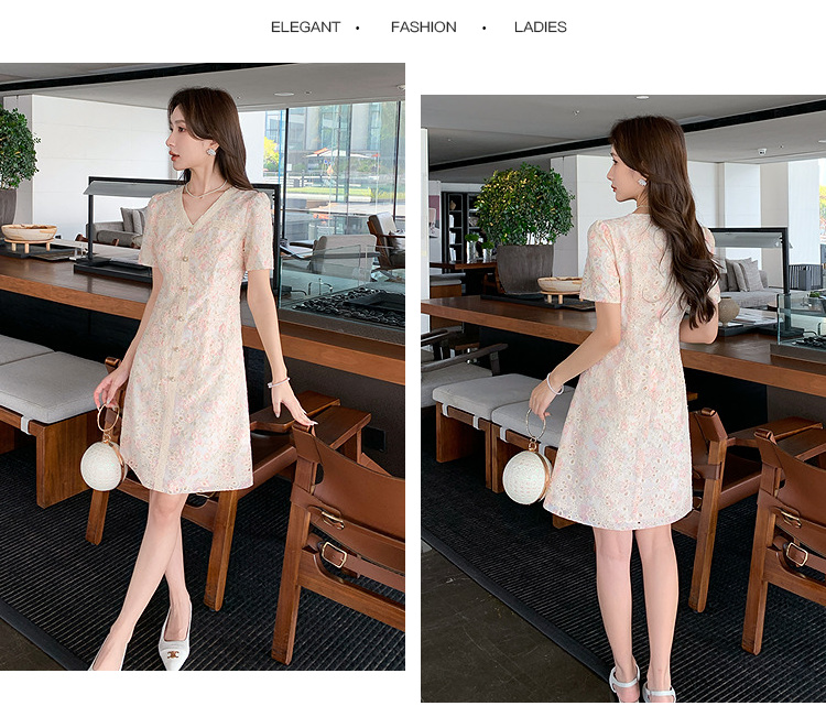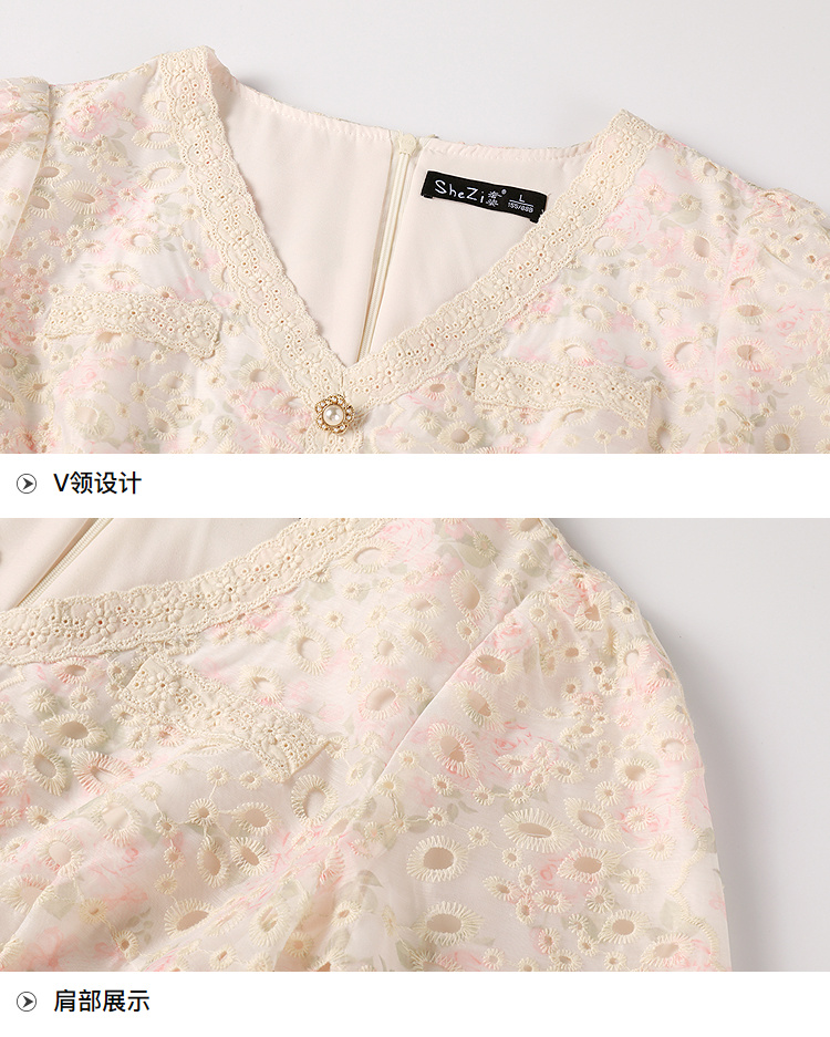 奢姿大码女装2025夏季气质v领短袖连衣裙胖妹妹时尚减龄显瘦裙子9952869637
