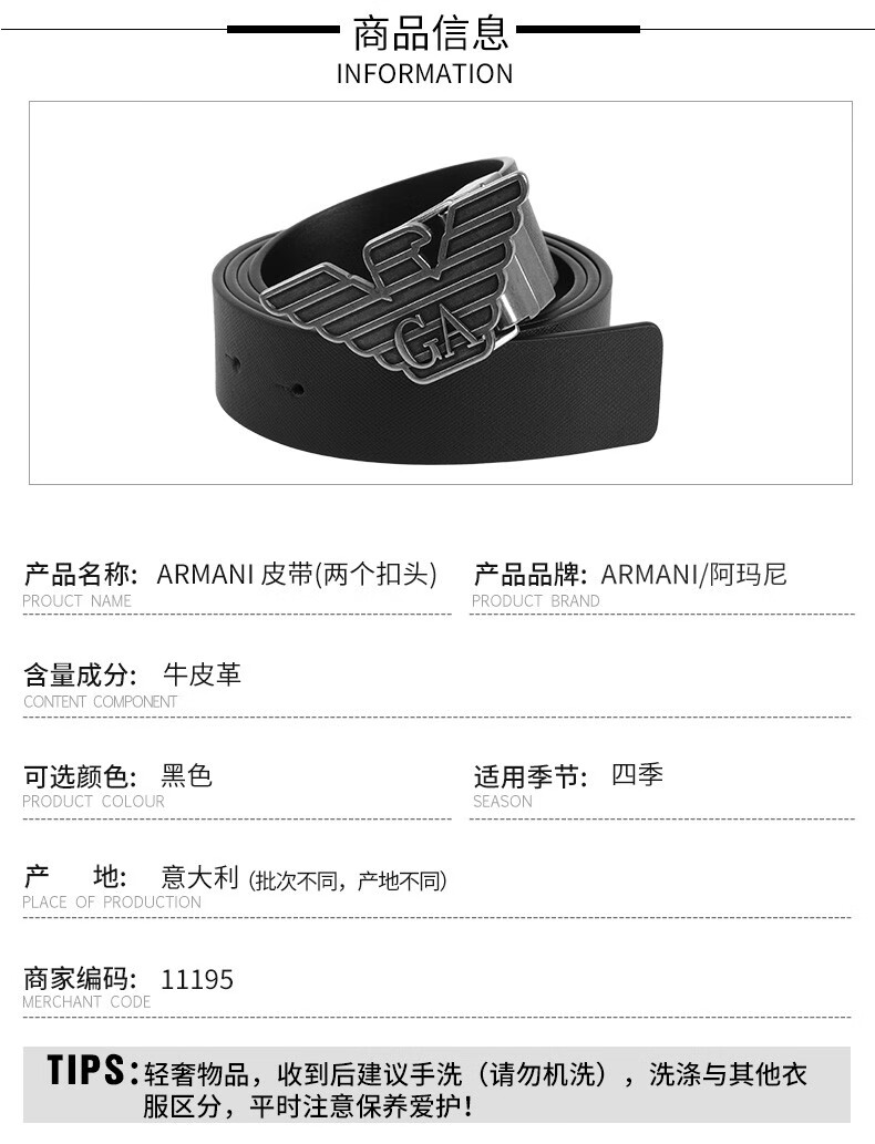 阿玛尼(ARMANI) 男士休闲百搭腰带黑色皮带11195