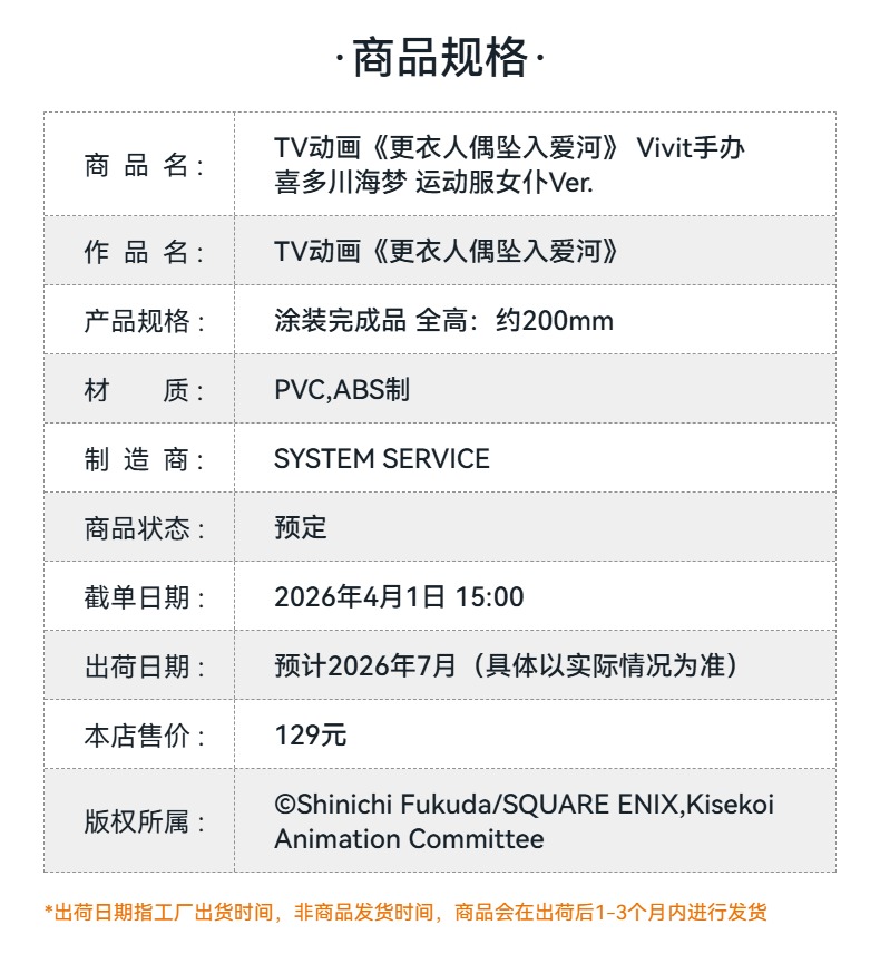 【GSC预售定金】TV动画《更衣人偶坠入爱河》 Vivit手办 喜多川海梦 运动服女仆Ver.