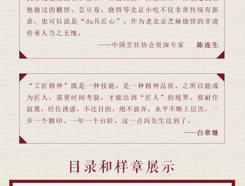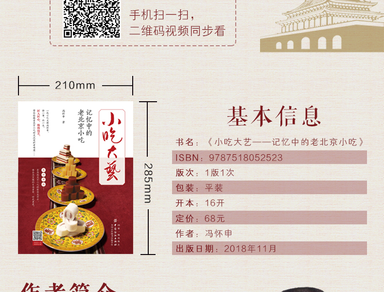 《小吃大艺——记忆中的老北京小吃》入选的小吃均历史悠久,兼乡土气息与地域特色,土生土长的本地人都爱、至今仍是街头巷尾的美食主角。蒸货、炸货、烙货......此书整篇用京味京腔的讲述方式,清晰地延着北京的历史轨迹讲述了八十种小食,带入到北京的历史轨迹中去,让读者生动有趣地了解当地的饮食文化。同时,细腻地描写出“由食入世”的人生感悟。