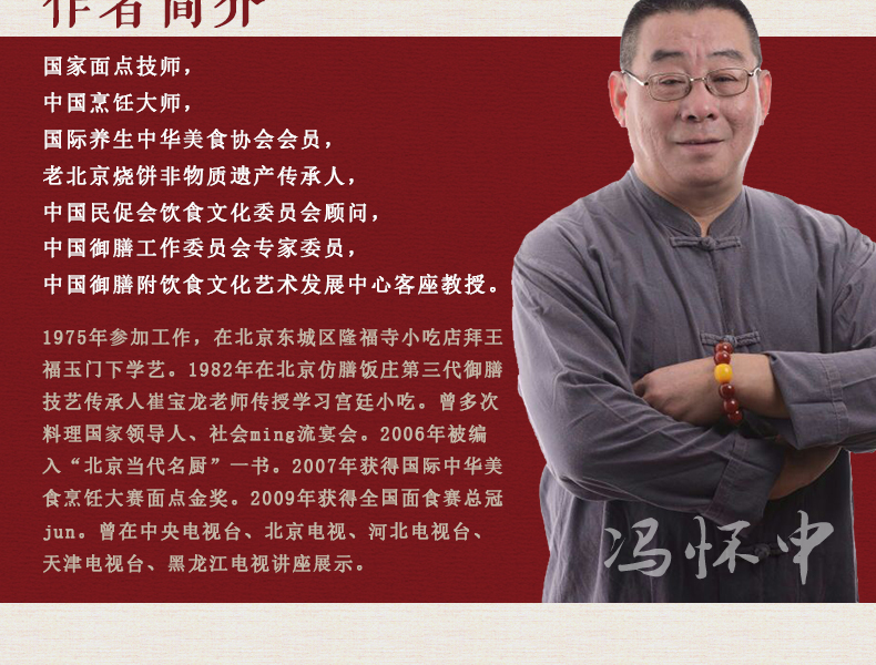 国家面点技师,中国烹饪大师,国际养生中华美食协会会员,老北京烧饼非物质遗产传承人,中国民促会饮食文化委员会顾问,中国御膳工作委员会专家委员,中国御膳附饮食文化艺术发展中心客座教授。1975年参加工作,在北京东城区隆福寺小吃店拜王福玉门下学艺。1982年在北京仿膳饭庄第三代御膳技艺传承人崔宝龙老师传授学习宫廷小吃。曾多次料理国家领导人、社会宴会。2006年被编入“北京当代名厨”一书。2007年获得国际中华美食烹饪大赛面点金奖。2009年获得全国面食赛总冠jun。曾在中央电视台、北京电视、河北电视台、天津电视台、黑龙江电视讲座展示。