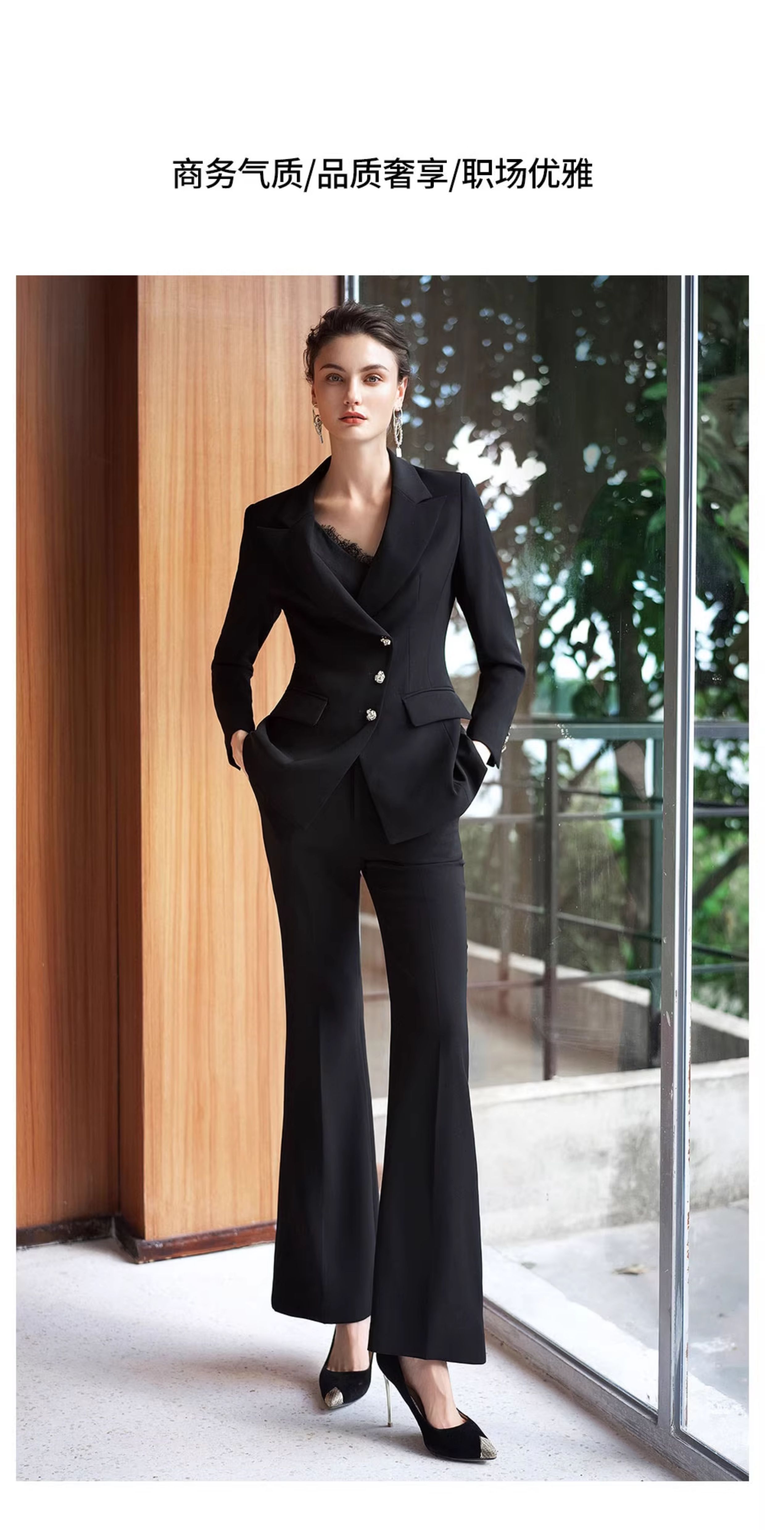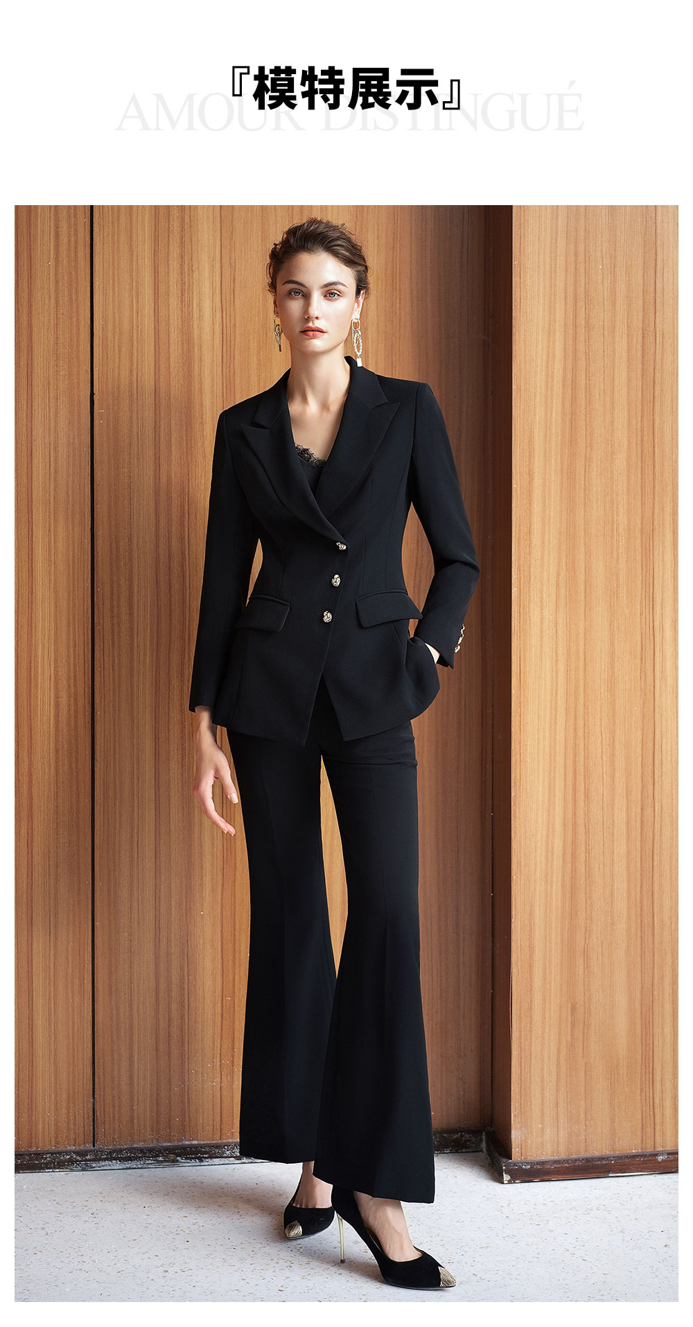 IWY/高级感黑色总裁西装套装女秋冬长袖设计感微喇裤职业工作服CP2518