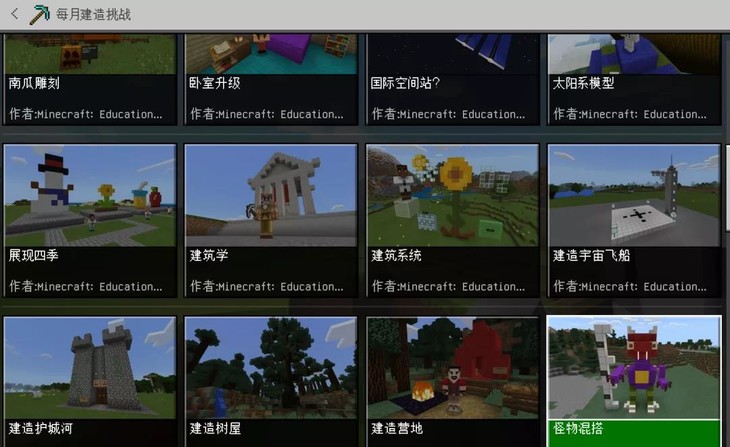 除了自带课程外,教育版自带的每日搭建挑战板块会为孩子创造各种不同的想象力世界,孩子接受任务与全世界的孩子一起完成的搭建任务。从元素寻宝、博物馆不眠夜、时间机器、沉船叙事,到太阳系模型、宇宙飞船、国际空间站,再到各种形式的建筑设计,只有想象力触及不到的远方,没有实现不了的课程设计,只能感叹国外教育在STEM课程设计有多么的超前!