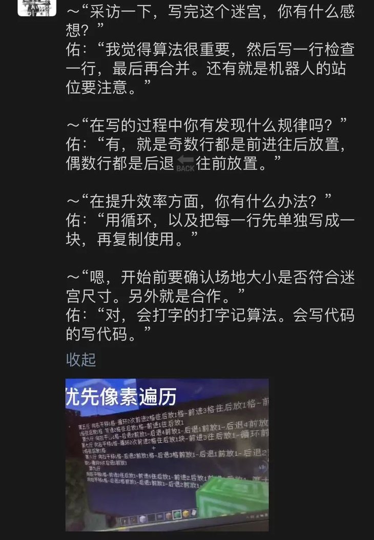 而我们在这个平台中要教会孩子的是,通过编程思维,真正将编程运用到现实的解决问题中,而不是在空中楼阁中学习冰冷的代码。这个看似在游戏中的代码生成器大大的鼓励了学生们将Minecraft的开放世界与流行的编程学习平台相结合,来学习各学科基础知识和编程能力。孩子们可以通过编写Python代码在Minecraft中实现自由移动、建造和创造,代替一个个手动堆积方块,用编程的力量改变我的世界!
