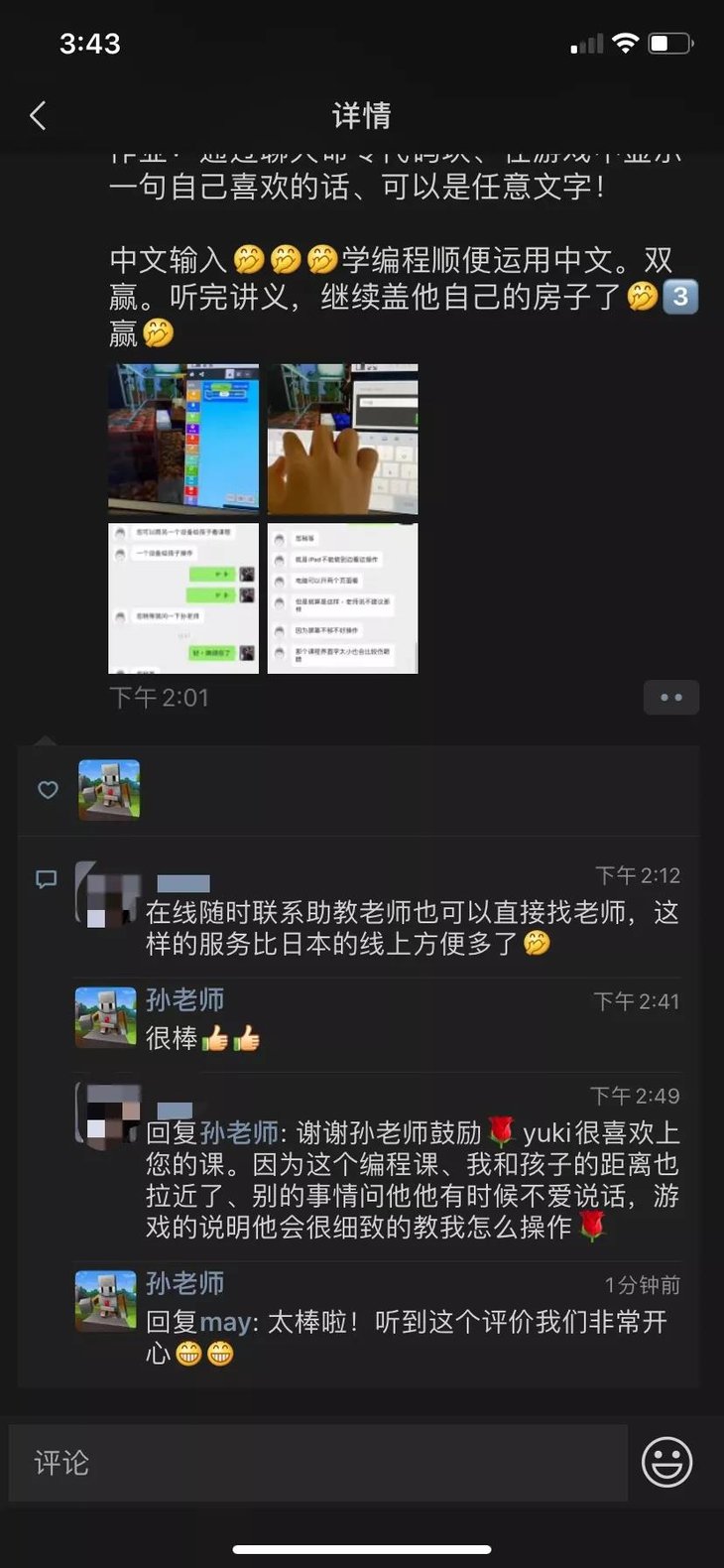 编程学习答疑群内任课老师作业指导,课程答疑。促进孩子们按时完成学习进度,形成学习闭环,保证学习效果让孩子不会掉队。