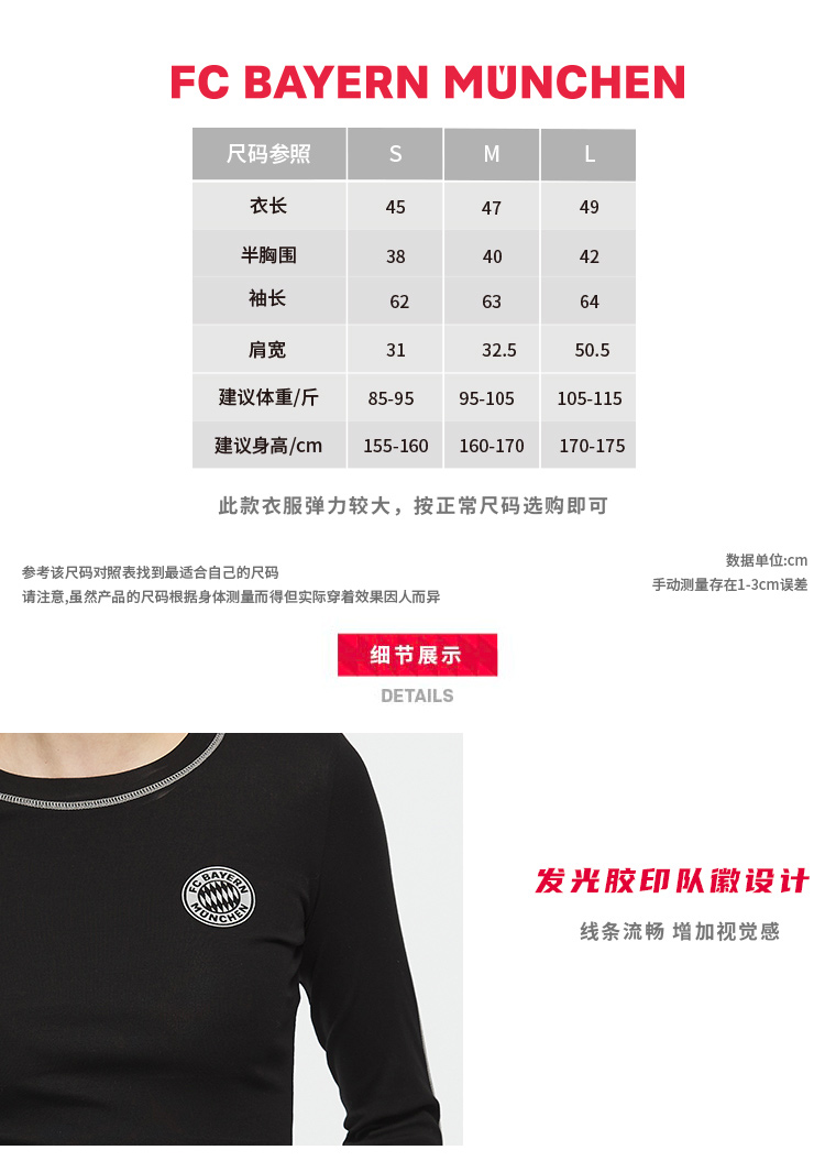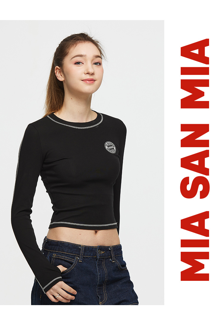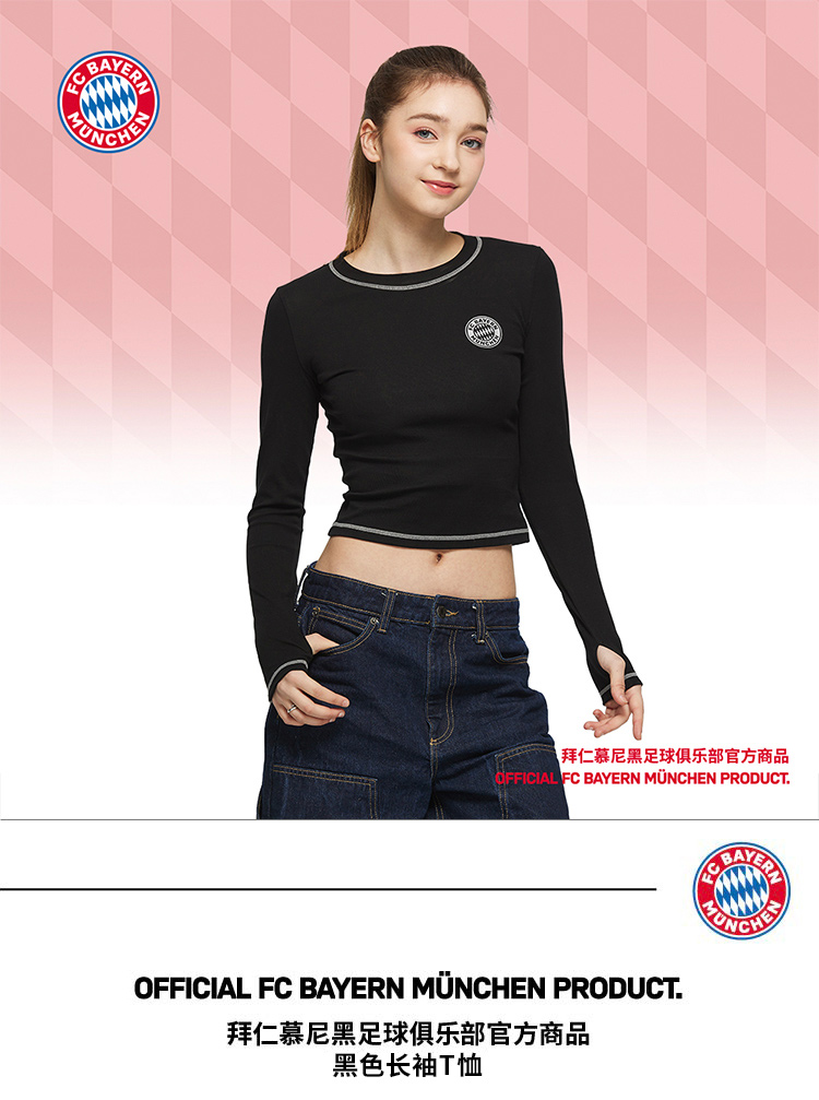 【官方正版】拜仁慕尼黑足球俱乐部|黑色运动长袖T恤球迷辣妹装