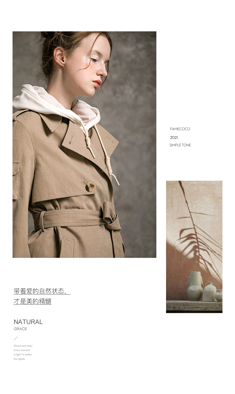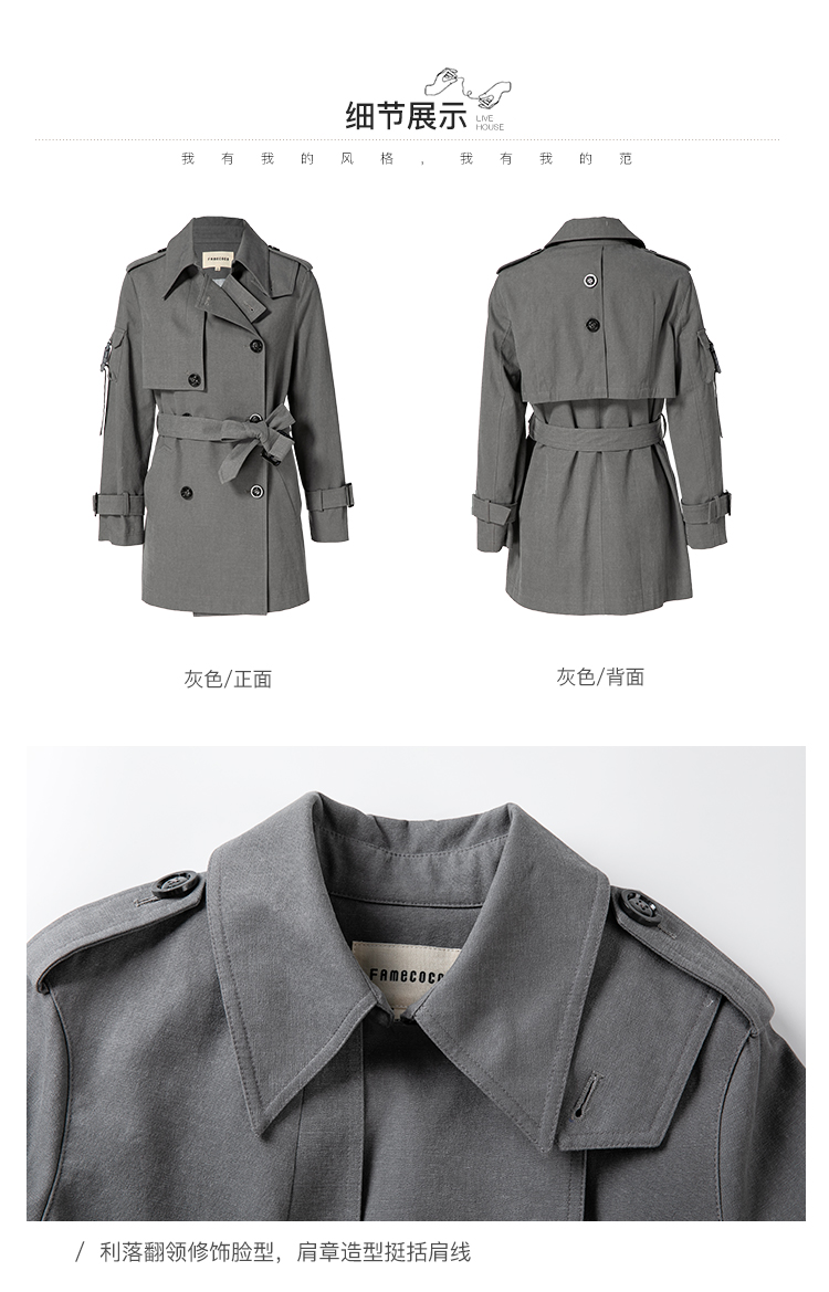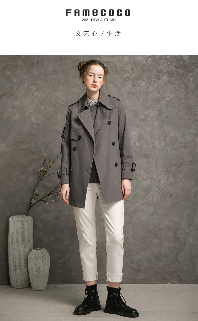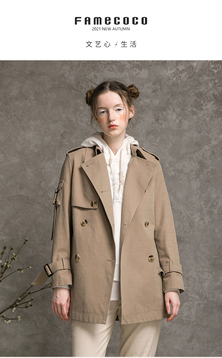 Famecoco范可儿风衣外套女秋原创复古小个子中长款F216AA003