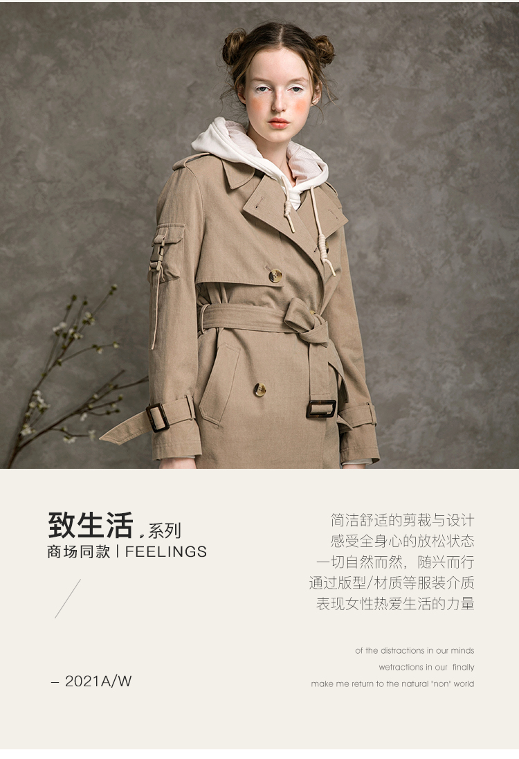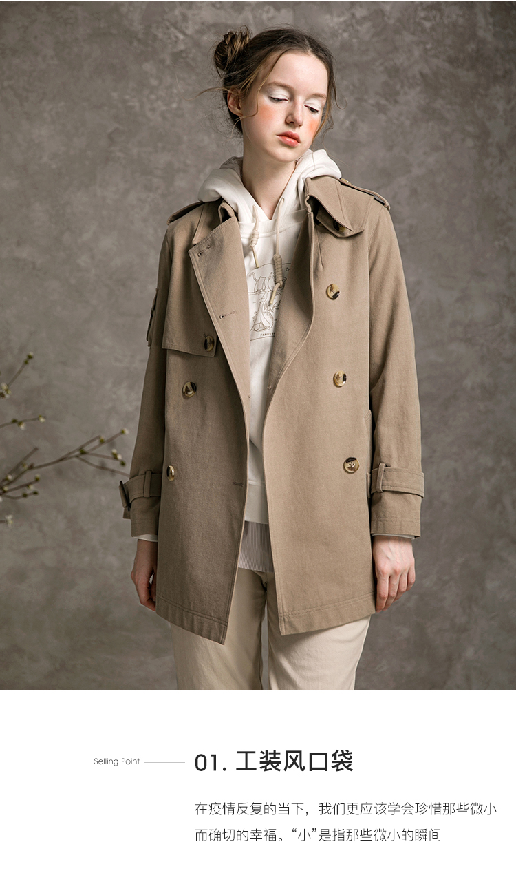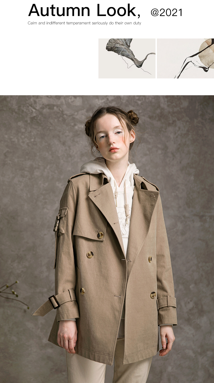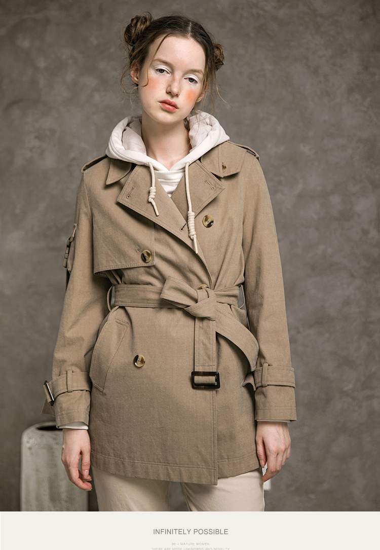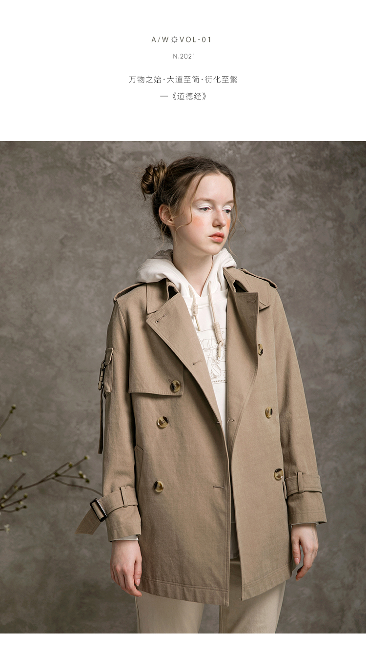 Famecoco范可儿风衣外套女秋原创复古小个子中长款F216AA003