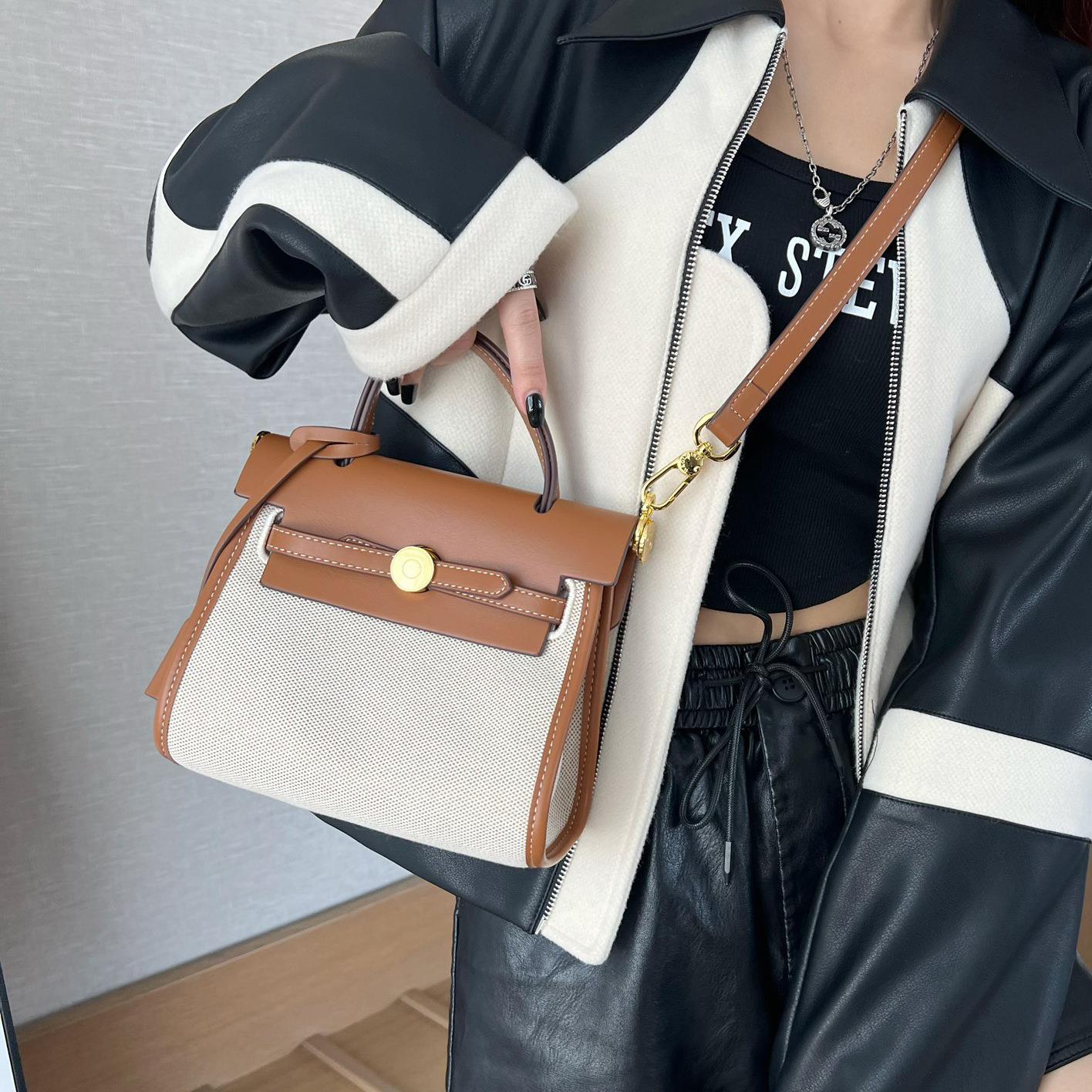 2023女款包包秋冬新款时尚个性撞色凯莉包单肩手提斜挎女包批发