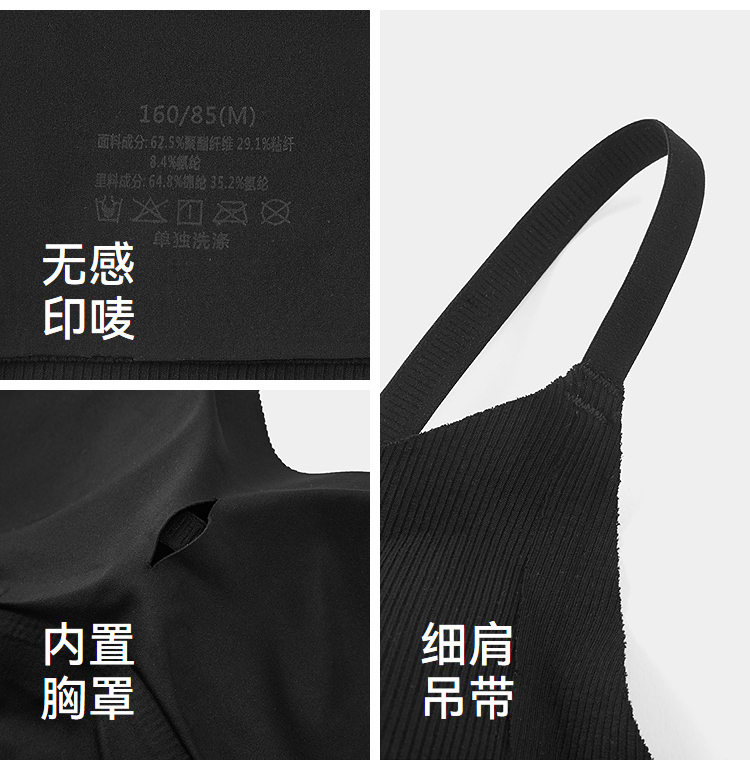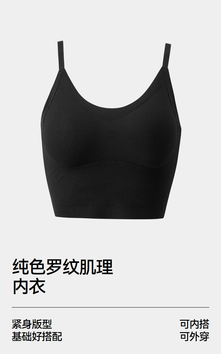 森马内衣女夏季自带胸垫纯色细肩吊带罗纹舒适肌理背心内外皆可穿