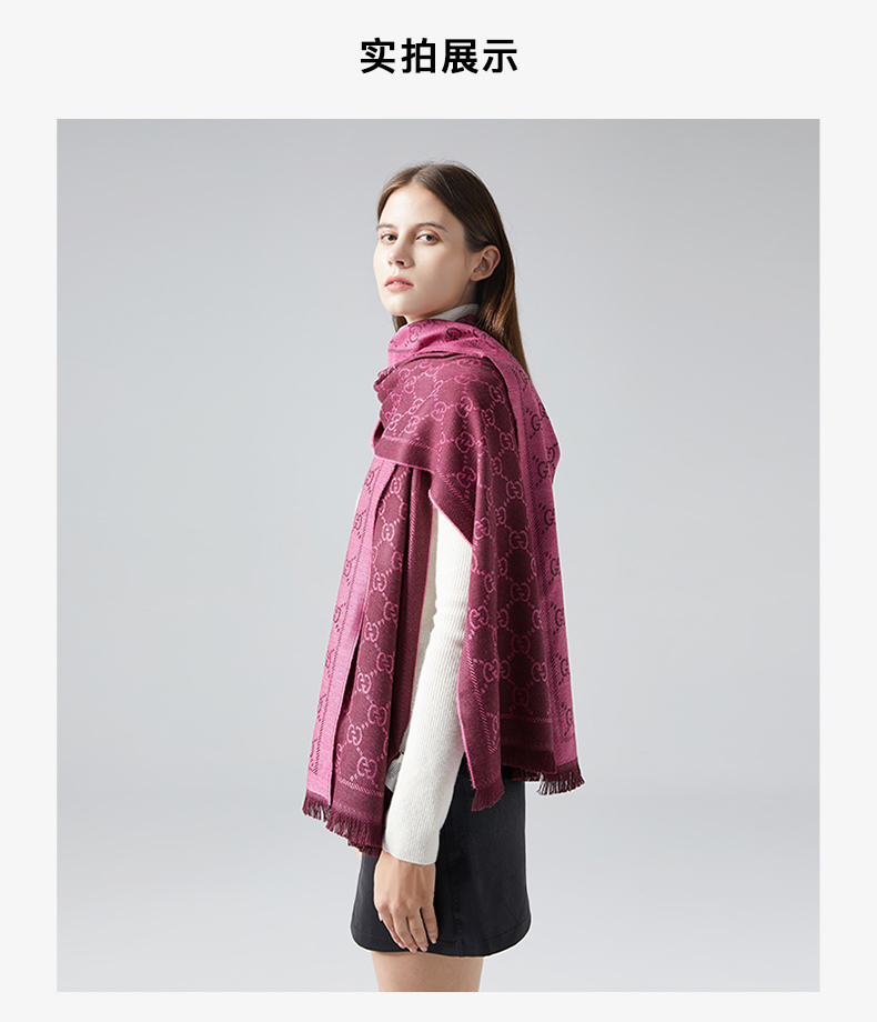 GUCCI/古驰围巾女士经典双G提花流苏边针织羊毛围巾133483 3G200